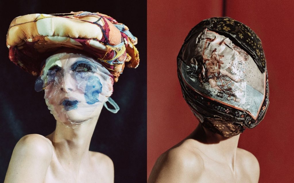 หน้ากากผ้าฝ้ายบางจากโชว์แรก SS1989 ถูกจัดวางใกล้หน้ากากโลหะขัดเงาจาก Artisanal 2025 สะท้อนว่าเส้นทางระหว่างสองชิ้นนี้ไม่ใช่ระยะเวลา แต่คือวิวัฒนาการของความคิดเรื่องอัตลักษณ์ในแฟชั่นยุคใหม่