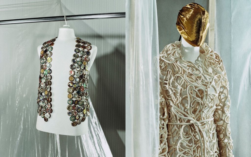 ที่เซี่ยงไฮ้ ถนน Yan Dang ดูคล้ายห้องทดลองของเวลา ผู้ชมเดินเข้าสู่นิทรรศการ Artisanal รากแก้วของ Margiela ที่ยังเต้นด้วยมือ และด้วยความดิบของวัสดุที่ยังไม่ผ่านการขัดเกลา 58 ลุคจากปี 1989 ถึงปัจจุบันถูกวางเรียงเหมือนบทกวีที่ถักจากผ้า เส้นด้าย และความดื้อรั้นของการทดลองที่ไม่รู้จบ หลายลุคถูกจัดตามธีมการอัปไซเคิล การเดโครงสร้าง ภาพลวงตา rawness และความงามของ “สิ่งธรรมดาที่ถูกยกระดับ”