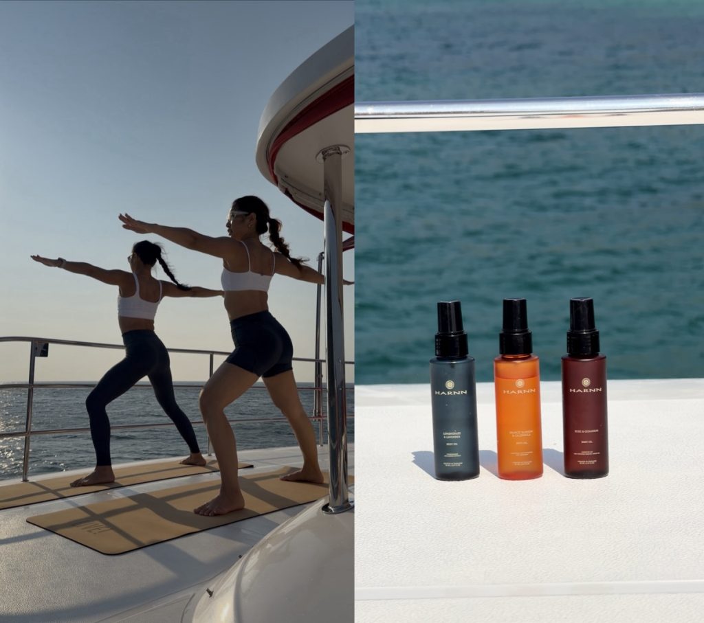 กิจกรรมบนเรือยอชต์ในครั้งนี้ถูกจัดวางให้เป็นลำดับของ “ritual” ที่นำพาผู้เข้าร่วมเข้าสู่ภาวะสมดุลอย่างเรียบง่าย เริ่มต้นด้วยโยคะบนดาดฟ้าเรือที่เปิดรับลมทะเล นำโดยครูผู้เชี่ยวชาญ ซึ่งช่วยปลุกพลังของร่างกายอย่างนุ่มนวล ก่อนจะต่อเนื่องสู่เวิร์กช็อป The Art of Body Oil Rituals ที่ HARNN ถ่ายทอดศาสตร์การบำรุงผิวผ่านน้ำมันสกัดจากธรรมชาติ กลายเป็นอีกหนึ่งมิติของการดูแลตัวเองที่ทั้งสัมผัสได้และรู้สึกได้