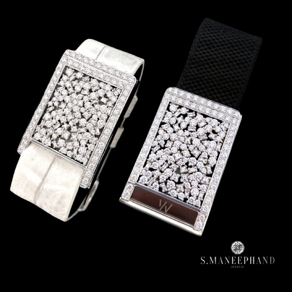 อีกหนึ่งแบรนด์ที่ไม่เคยหยุดสร้างความประหลาดใจได้อย่างน่าชื่นชมคือ S.Maneephand ด้วยซิกเนเจอร์ของเครื่องประดับรูปทรงกราฟิกที่ดูโมเดิร์นและเฉียบคม ไม่น่าแปลกใจที่ดิไซน์ของแบรนด์จะครองใจสาวสังคมยุคใหม่ได้อย่างอยู่หมัดครั้งนี้ S.Maneephand ขยับเข้าสู่โลกของ wearable tech อย่างเต็มตัว ผ่านเคสประดับเพชรที่ออกแบบขึ้นเป็นพิเศษสำหรับ Apple Watch, AirPods และ Whoop ซึ่งถ่ายทอดดีเอ็นเอของแบรนด์ออกมาได้อย่างร่วมสมัยและโดดเด่น
