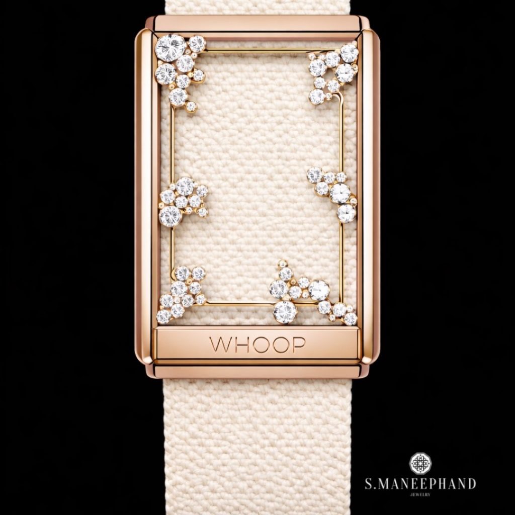 โดยเฉพาะเคสสำหรับ Whoop ที่ถือเป็นไฮไลต์ด้วยตัวเลือกที่หลากหลาย ตั้งแต่ดิไซน์แบบ full pavé ที่ประดับเพชรเต็มพื้นที่ สะท้อนความหรูหราในแบบ statement piece ไปจนถึงงานออกแบบเชิงกราฟิกที่จัดวางเพชรอย่างมีจังหวะและความเคลื่อนไหว ไม่ว่าจะเป็นแรงบันดาลใจจากดอกซากุระที่กำลังผลิบาน ไปจนถึงลวดลายคลื่นเพชรในรูปแบบนามธรรม ทั้งหมดนี้สะท้อนมุมมองใหม่ของเครื่องประดับ ที่ขยายไปสู่เทคโนโลยีรอบตัว กลายเป็นอีกหนึ่งภาษาของสไตล์ที่ทั้งเฉียบ เท่ และมีเอกลักษณ์เฉพาะตัว