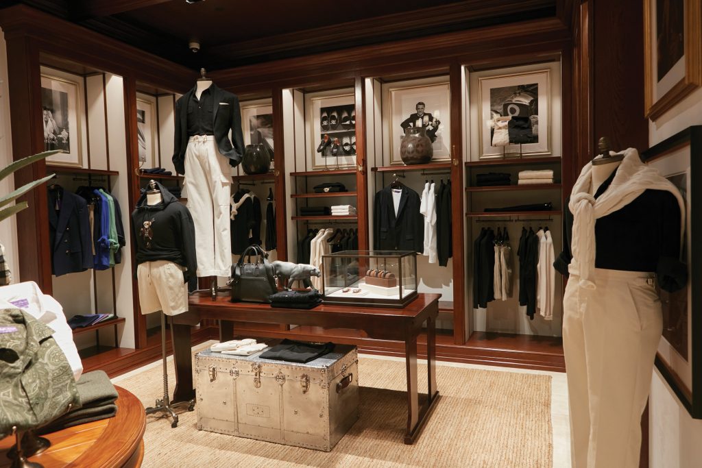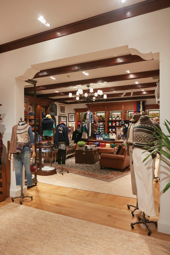 เรื่องเล่าของการออกเเบบพื้นที่ภายในของ Flagship Boutique เเห่งนี้ เกิดขึ้นจากต้นเเบบบ้านของคุณ Ralph ที่ Beverly Hills ที่ผสมผสานระหว่างรูปเเบบอเมริกัน คลาสสิก ลักเชอรี (American Classic Luxury) ระคนกลิ่นอายของ อาร์ตเดโค (Art Deco – อลังการศิลป์) พร้อมเพิ่มเติมความพิเศษให้เกิดเป็นประสบการณ์เชิงการออกเเบบร่วมสมัยอันน่าจดจำ (Contemporary Phenomenology) ดุจเดินเยี่ยมชมภายในบ้านหลังงามที่ Beverly Hills ด้วยการเเทรกรายละเอียดของวิถีชีวิตของกลุ่มคนผู้เปี่ยมด้วยไลฟ์สไตล์น่าสนใจ ที่งดงามเหนือกาลเวลา (Timeless Lifestyle) ผ่านรายละเอียดน้อย-ใหญ่ ได้แก่ ภาพถ่ายขาวดำ ดอกไม้ที่มีการจัดเเต่งเปลี่ยนไปตามฤดูกาล เเละรวมไปถึงเปลี่ยนไปตามคอลเลกชันของเสื้อผ้า
