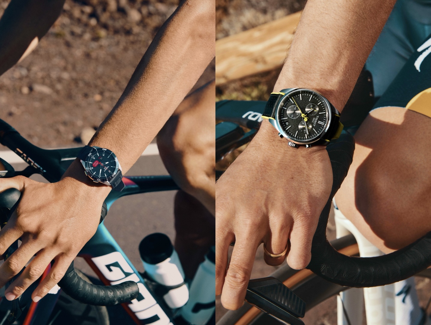 ไม่เพียงเท่านั้น ตัวเรือนผลิตจากสเตนเลสสตีล 316L ขับเคลื่อนด้วยกลไก G10.212 Chrono Quartz พร้อมฟังก์ชัน Chronograph 3 หน้าปัด แสดงวันที่ และกันน้ำได้ลึกถึง 100 เมตร สายนาฬิกาทำจากวัสดุผสมระหว่างผ้า หนัง และยาง โดยได้แรงบันดาลใจจากแฮนด์จักรยาน พร้อมเคลือบสาร Super-LumiNova® ที่สามารถอ่านเวลาได้ชัดแม้ในที่แสงน้อย