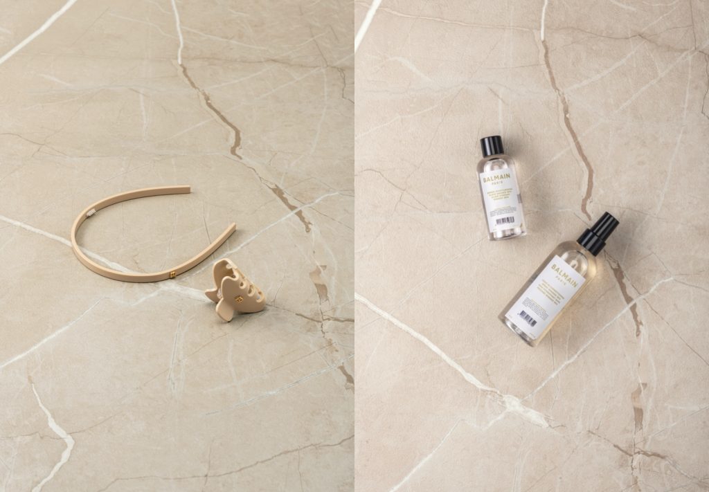 A standout highlight from the collection is the Limited Edition Muse de L’Été Pince à Cheveux Small, a beautifully designed beige hair clip, reminiscent of sun-kissed beach sand. Its warm, refined hue exudes calm and sophistication, while the iconic gold ‘B’ logo of Balmain Hair adds the perfect finishing touch. Ideal for seaside escapes or simply enhancing your everyday hair look, this piece brings a subtle touch of luxury to every moment.