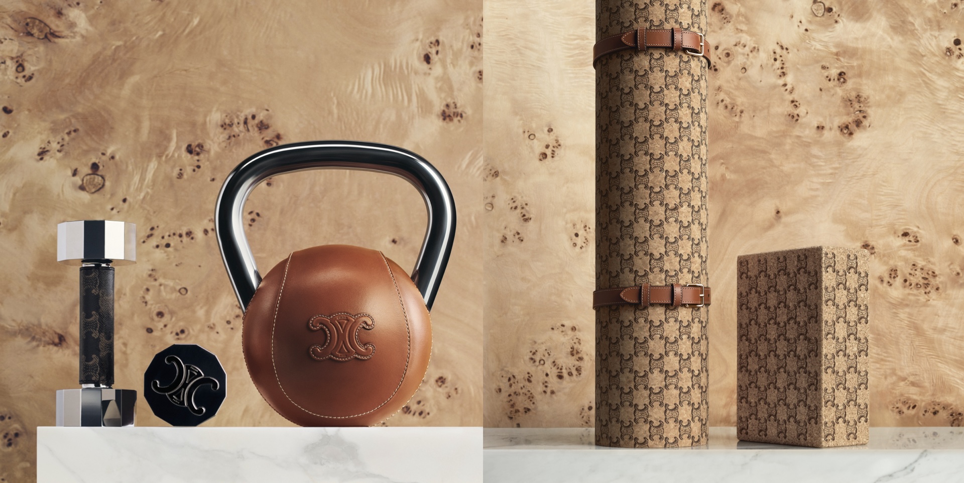 CELINE Pilates ประกอบไปด้วยอุปกรณ์ออกกำลังกายที่ถูกออกแบบมาอย่างพิถีพิถัน ไม่ว่าจะเป็น เครื่องรีฟอร์มเมอร์ เคตเทิลเบล ดัมเบล เสื่อโยคะ บล็อกโยคะ สนับถ่วงข้อเท้า และเชือกกระโดด ทุกชิ้นผลิตจากวัสดุคุณภาพเยี่ยม เช่น หนังลูกวัวธรรมชาติ ที่ให้สัมผัสหรูหรา เหล็กขัดเงาคุณภาพดี ที่ให้ความทนทาน และ ไม้ก๊อก ที่มีความแข็งแรง เสริมด้วยลวดลาย Triomphe อันเป็นเอกลักษณ์ของ CELINE ทำให้ทุกชิ้นไม่เพียงแต่ใช้งานได้ดีเยี่ยม แต่ยังมีความหรูหราสมกับเป็นส่วนหนึ่งของจักรวาล CELINE นอกจากนี้ คอลเลคชั่นนี้ยังมีกระเป๋ายิมใบใหญ่จากผ้าแคนวาสลาย Triomphe ที่ออกแบบมาเพื่อการพกพาอุปกรณ์ออกกำลังกายอย่างสะดวกสบาย
