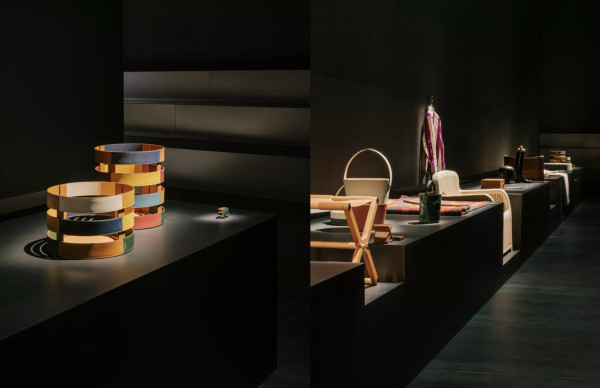 ผ่านวัตถุดิบพื้นฐานอย่าง ก้อนอิฐ ก้อนหิน หินชนวน ไม้ หรือแม้แต่ดินอัด เพื่อรังสรรค์ความแตกต่างให้กับพื้นที่พร้อมสื่อสารสัญญะของความเป็นหนึ่งเดียวกันระหว่างโลกและผู้ที่เข้ามารับชม แอร์เมสยังได้ทำการเปิดตัวคอลเลคชั่นใหม่ของทางแบรนด์