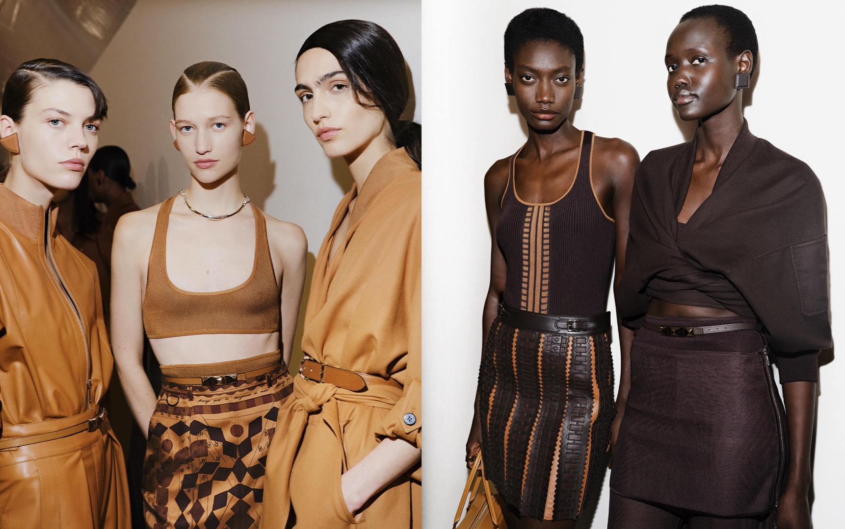 ตั้งแต่ชุดรอมเปอร์ผ้าไหมทวิลในโทนสี chestnut ที่ผสมผสานลวดลายที่ซับซ้อน ลายบล็อกพิมพ์ และลายสกรีน เสื้อคลุม dust coat ที่รังสรรค์ขึ้นจากผ้าไหมและผ้าวูล ไปจนถึง เสื้อโค้ทหนังลูกวัว ที่มีความพลิ้วไหวพร้อมกับเสื้อกั๊กที่มาพร้อมเชือกรัดและแจ๊คเก็ตบอมเบอร์ นอกจากนี้ การเล่นเทคนิคเลเยอร์ริ่งยังคงเป็นอีกหนึ่งเอกลักษณ์ที่สร้างความโดดเด่นให้กับคอลเลคชั่นนี้ได้อย่างเป็นที่ประจักษ์ ตั้งแต่การจับคู่ของ กระโปรงยาวติดซิปทำจากผ้าไหมตาข่ายเนื้อบาง เข็มขัด Médor ที่เปิดเผยตัวออกมาอย่างภาคภูมิบนกางเกง culotte เอวสูง ชุด apron สีน้ำตาล ebony brown พร้อมแถบผ้า organdy ที่ทอเป็นลายนูนต่ำ ชุด smock dress ผ้าป๊อปลินคอตตอนสีเขียวบรอนซ์ แจ๊คเก็ต utility ใส่ได้สองด้านตัดเย็บด้วยผ้าเดนิม alabaster chevron และกระเป๋ า Birkin à l’envers ที่พลิกด้านในออกมาด้านนอก และอีกมากมาย