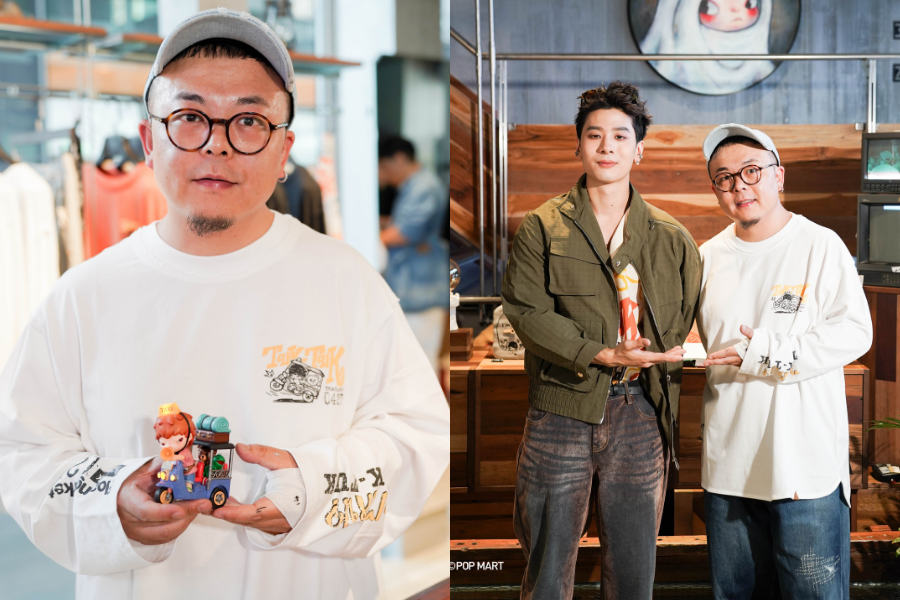 “I’m drawn to the moments when the city feels undefined—not quite morning, not yet night. The tuk-tuk always exists within that in-between time, moving forward quietly. I wanted to preserve that feeling in this collection,” says Lang, creator of the Hirono character.