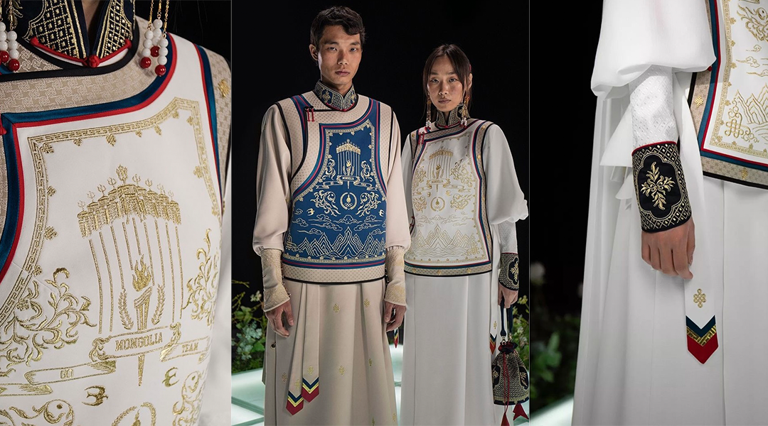 โดยชุดประจำชาติสำหรับนักกีฬามองโกเลียอันโดดเด่นเหล่านี้ยังมีความหมายแฝงที่สะท้อนถึงการแข่งขันโอลิมปิกและวัฒนธรรมของมองโกเลียไว้อีกด้วย ไม่ว่าจะเป็น การปักลวดลายธงสีขาวทั้งหมดเก้าผืนและลวดลายคบเพลิงโอลิมปิกเพื่อสะท้อนถึงการชูธงสีขาวในพิธีเปิดเทศกาลนาดัม ซึ่งเปรียบเสมือนการจุดคบเพลิงในพิธีเปิดโอลิมปิก หรือ ลวดลายภูเขาซัมเบอร์ ภูเขาที่สูงที่สุดที่มักปรากฏในนิทานพื้นบ้านของของมองโกเลีย ที่สะท้อนถึงนักกีฬาที่ต้องมีความมุ่งมั่น อดทน เพื่อที่จะประสบความสำเร็จในการแข่งขัน