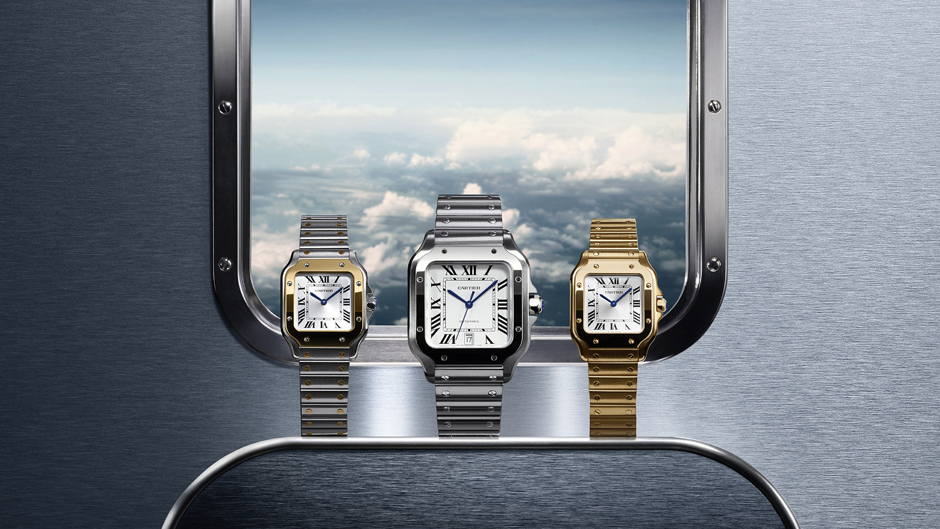 Santos de Cartier ถือเป็นเรือนเวลาข้อมือเรือนแรกในโลกที่ถือกำเนิดขึ้นในปี 1904 โดย Louis Cartier ได้ออกแบบเรือนเวลานี้ขึ้นเพื่อมอบให้กับนักบินผู้บุกเบิกอย่าง Alberto Santos-Dumont เพื่อให้เขาสามารถดูเวลาได้ขณะอยู่กลางอากาศ ความคิดอันล้ำยุคนี้ส่งผลให้ Santos de Cartier กลายเป็นหนึ่งในนาฬิกาสุดไอคอนิคของโลก นับแต่นั้นมา เส้นสายอันบริสุทธิ์ ขอบเหลี่ยมที่เปี่ยมเอกลักษณ์ และสกรูเปลือยบนกรอบหน้าปัดได้กลายเป็นซิกเนเจอร์ที่ตราตรึงในใจของนักสะสมนาฬิกาทั่วโลก