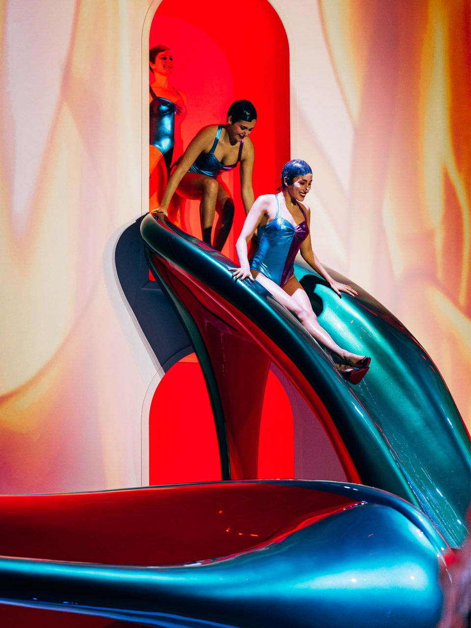 ความน่าดึงดูดและชวนตื่นเต้นไม่จบเพียงแค่นั้นเมื่อ LaChapelle กระโดดลงไปในสระรวมถึง Blanca Liv ที่กระโดดลงน้ำด้วยเช่นกัน พวกเขาต่างมีส่วนร่วมในการแสดงอย่างสนุกสนาน ในขณะที่ คริสเตียน ลูบูแตง ดีไซเนอร์ผู้เป็นดาวเด่นในค่ำคืนนี้ก็ขอร่วมโชว์นี้ด้วยการสไลด์ตัวลงสระน้ำจากสไลเดอร์รูปส้นสูง Miss Z ซึ่งเป็นช่วงเวลาอันน่าประทับใจที่สร้างให้ค่ำคืนนี้เป็นที่จดจำมากยิ่งขึ้นอย่างปฏิเสธไม่ได้