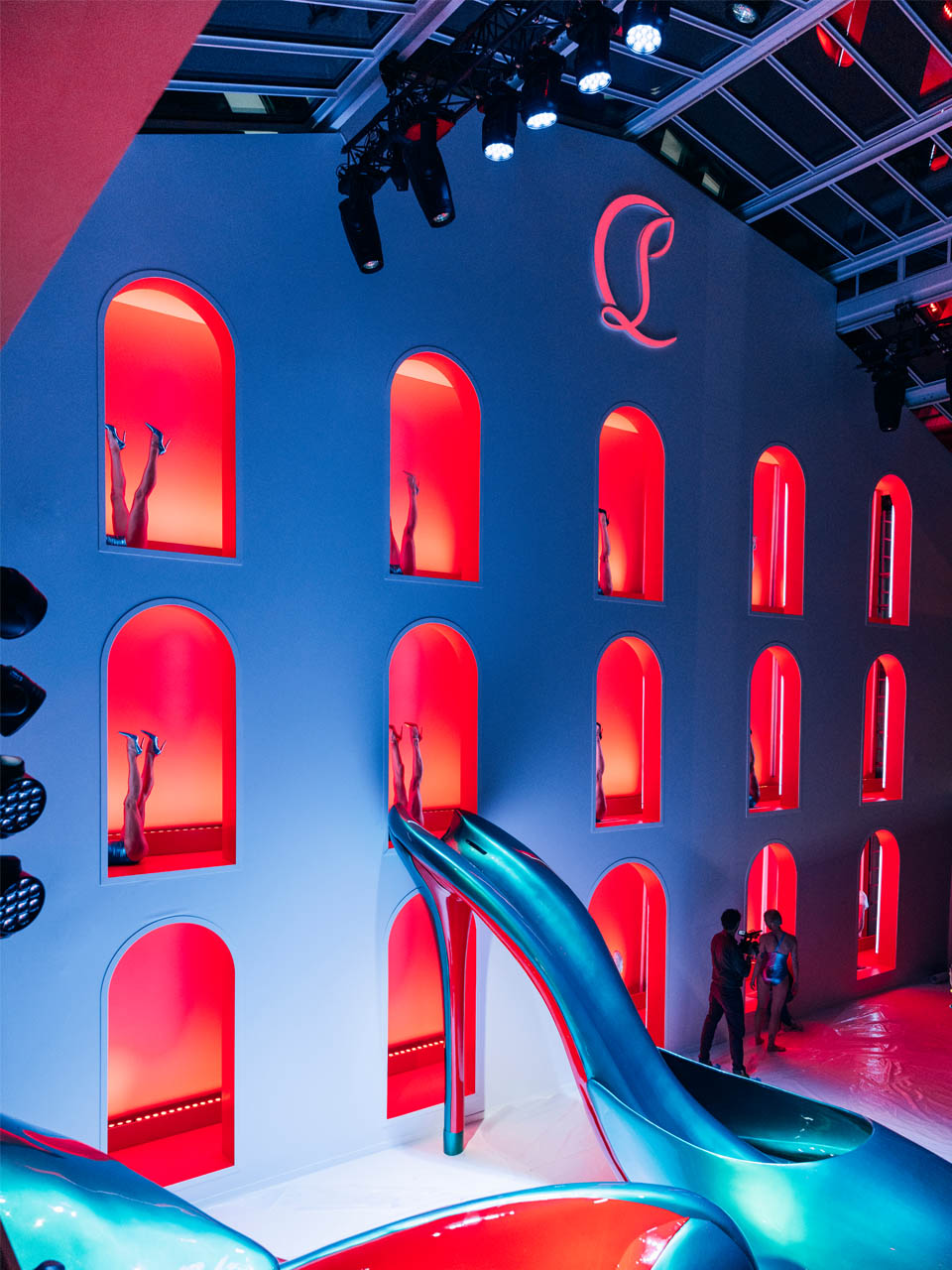 ด้วยความร่วมมือกับผู้กำกับศิลป์มือทอง David LaChapelle และ Blanca Li นักออกแบบท่าเต้นสุดสร้างสรรค์ การจัดแสดงคอลเลคชั่นของ Louboutin ได้ยกระดับให้พรีเซนเทชั่นแฟชั่นแบบเดิมไปสู่ประสบการณ์เหนือระดับที่รวมประสาทสัมผัสอันหลากหลายเข้าไว้ด้วยกัน เพื่อเชิดชูศิลปะการร่ายรำ เสน่ห์แห่งสีสัน รวมถึงความหรูหราเชิงศิลป์ โดยได้รับแรงบันดาลใจจากการร่ายรำบัลเลต์ใต้น้ำอันน่าหลงใหลของฮอลลีวู้ดในช่วงปี 1950 การนำเสนอคอลเลคชั่นรองเท้าในครั้งนี้ได้ผสมผสานโลกของแฟชั่น การเต้นรำ และกีฬาเข้าไว้ด้วยกันโดยมีศิลปะเป็นตัวกลางในการเชื่อมต่อ ด้วยการนำเสนอแนวคิดสร้างสรรค์ที่ร้อยเรียงเข้าด้วยกันอย่างลื่นไหล สร้างให้ผู้ชมดื่มด่ำไปกับการแสดงที่พาให้เราหวนคิดถึงช่วงวัยเยาว์ที่เต็มไปด้วยความเบิกบานและมีชีวิตชีวา เป็นการบรรจบกันระหว่างความสง่างามและจินตนาการได้อย่างไร้ที่ติ