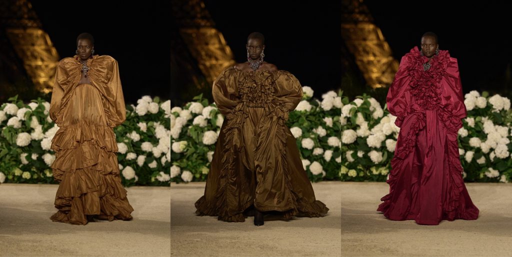 Paris by night has always been the natural stage for Yves Saint Laurent, and on this evening Anthony Vaccarello chose to return to that legacy only to twist it into something unmistakably of our time. At the Trocadéro, a French formal garden was transformed into an endless sea of white hydrangeas. At first, they seemed nothing more than a romantic wall of flowers lining the runway. But once the drones rose into the sky, everyone’s phones revealed the truth: the flowers had been planted to spell out the letters “YSL.” A stroke of PR genius as much as a visual spectacle, reminding everyone that this was Saint Laurent, no ambiguity allowed. “I think it’s good to hammer home the point that, oh là là, you are at Saint Laurent, and you leave knowing you couldn’t have been anywhere else,”Vaccarello said backstage. Reviewed by Manit Maneephantakun