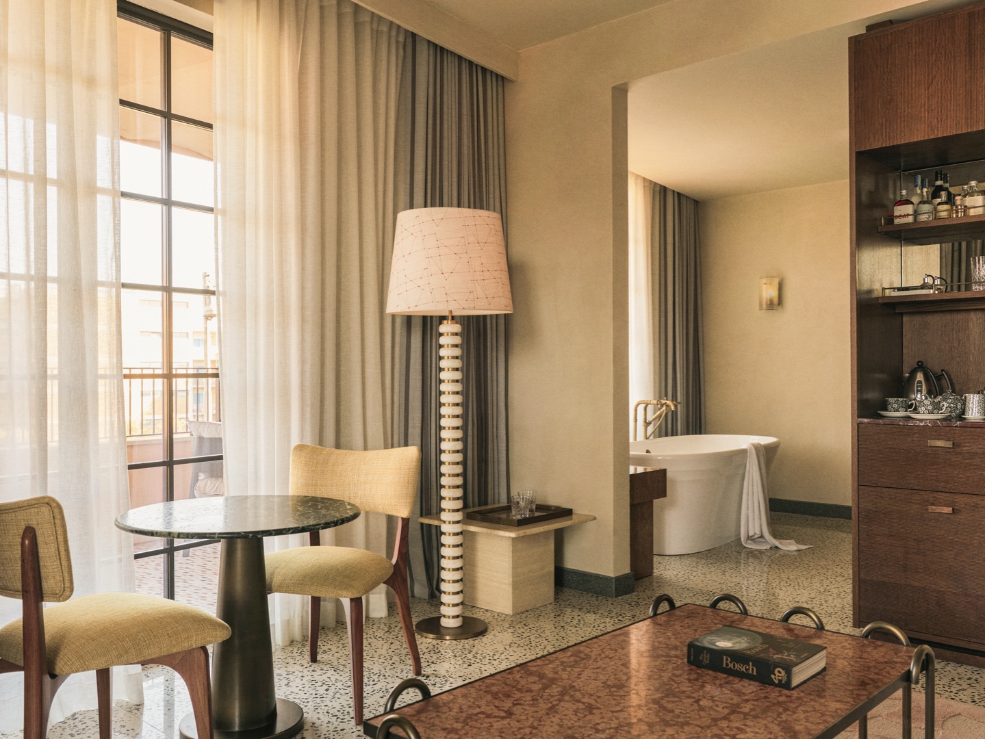 งานออกแบบโดยรวมของที่นี่ได้รับการรังสรรค์โดยทีมนักออกแบบจาก Soho Group และยังร่วมมือกับกลุ่มนักออกแบบสัญชาติอิตาเลียน Bitossi ในการออกแบบเครื่องเรือนของตกแต่งอันได้แก่โคมไฟดีไซน์ยุค 70s พร้อมกับช่างทอจาก Sardinian ชื่อ Mariantonia Urru ทำหน้าที่รังสรรค์สิ่งทอแฝงความหมายแยบคายตกแต่งแขวนในทุกผนังภายในห้อง โดยเส้นสายของงานสิ่งทอนี้รับกับเส้นโค้งเสมือนเคลื่อนไหวได้จากผนังหัวเตียง และโครงเตียงนอนวัสดุไม้