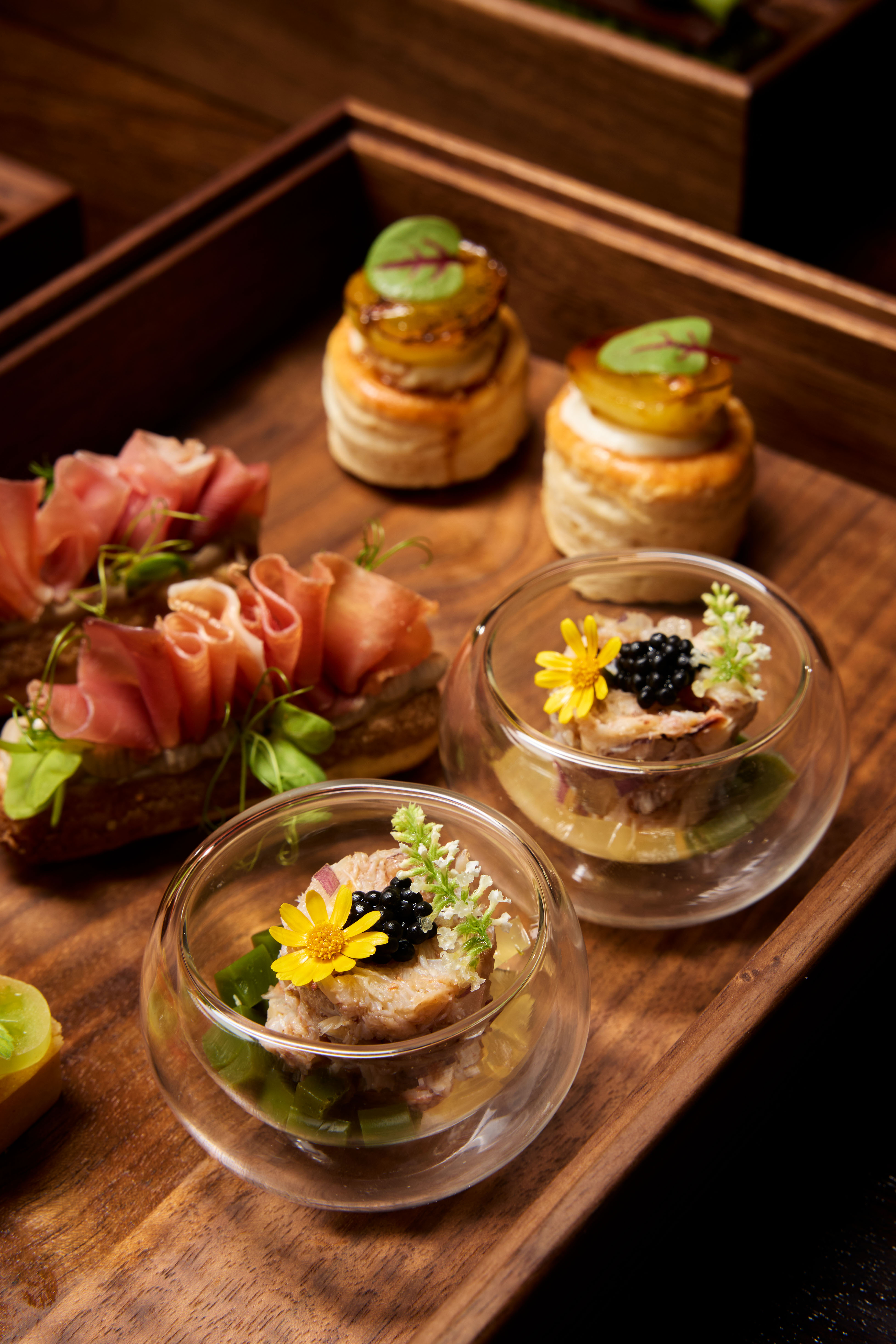 โดยชุดน้ำชายามบ่าย The St.Regis Bangkok x Peace和 Oriental Teahouse ซึ่งจะพาทุกท่านไปดื่มด่ำกับชาสุดพรีเมียม อย่าง ชาเซนฉะและชาเถี่ยกวนอิน ที่ให้ดื่มพร้อมไปกับลิ้มรสอาหารร่วมสมัยชั้นเลิศทั้งคาวและหวาน จะเริ่มต้นด้วยสโคนลูกพลับอบแห้ง ทานคู่กับแยมผลไม้ ครีมชีส และวิปครีม ตามด้วยอาหารคาวที่รังสรรค์ขึ้นจากส่วนผสมของวัตถุดิบชั้นพรีเมียมของ Peace和 Oriental Teahouse โดยเชฟมาเตโอ ฟอนทานา ซึ่งประกอบไปด้วย ทาร์ตเพสโต้ผสมผงมัทฉะ ตกแต่งด้วยมะเขือเทศและโหระพาที่เข้ามาเพิ่มความสดชื่น ตัดกับรสที่เข้มข้นของเพสโต้และมัทฉะ เอแคลร์โฮจิฉะ ท็อปด้วยมูสโฮจิฉะ พาร์มาแฮม ตัดกับรสเปรี้ยวของเมลอนดอง สลัดปูกับเจลลี่มัทฉะและเจลลี่ส้มยูซุ พายชั้นทรงถ้วยสไตล์ฝรั่งเศส ไส้มูสชีสกอร์กอนโซลา และองุ่นที่คาราเมลไลซ์ด้วยบัลซามิก ต่อด้วย โคนไส้มะม่วงกุ้งปรุงรสและเจลมะม่วง นำเสนอรสหวาน และรสเผ็ดได้อย่างลงตัว