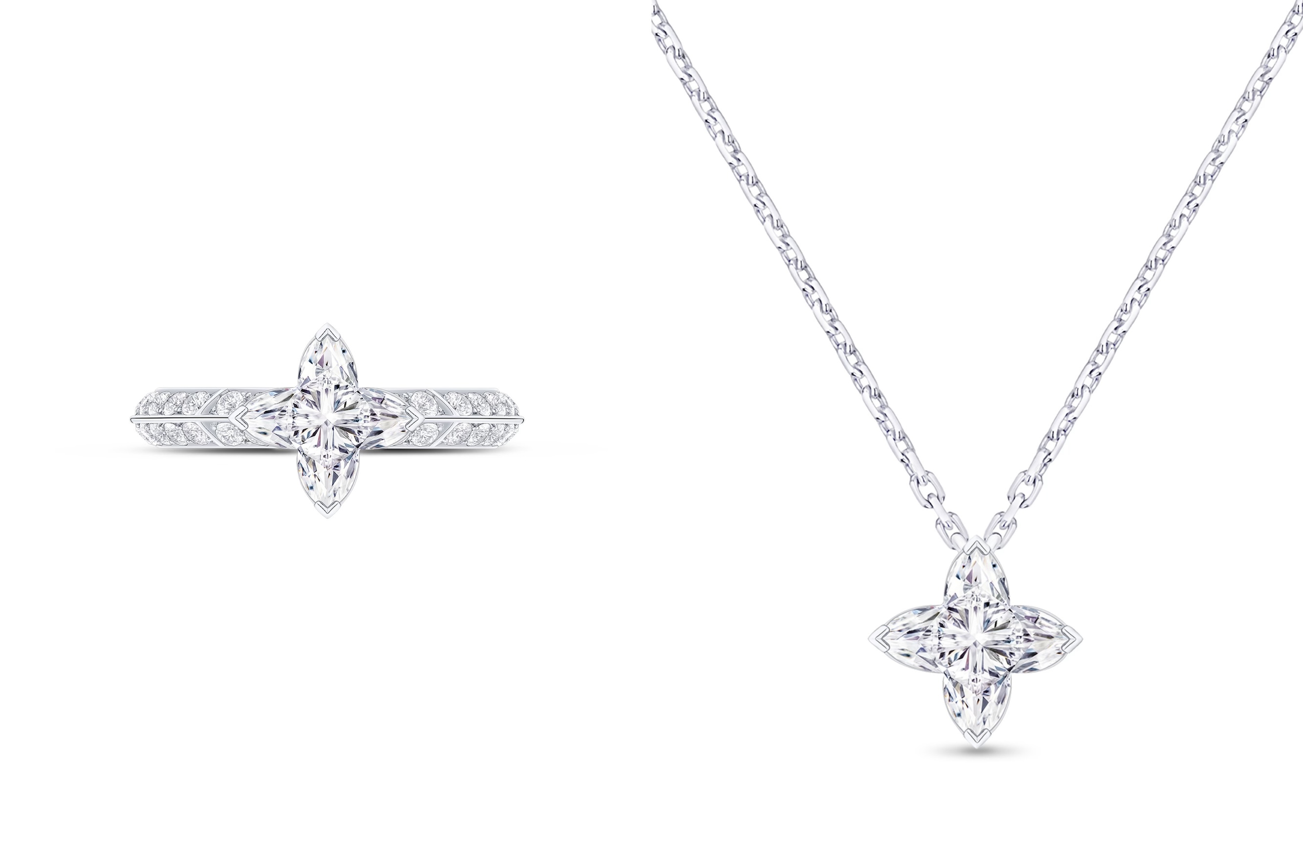 ฟรานเชสก้า อัมฟิตเธียรอฟ (Francesca Amfitheatrof) ผู้อำนวยการฝ่ายศิลป์แผนกนาฬิกาและเครื่องประดับของแบรนด์ได้นำ LV Monogram Star มาสร้างสรรค์เครื่องประดับในหลากหลายรูปแบบ ไม่ว่าจะเป็นแหวนตัวเรือนแพลตินัมประดับเพชร LV Monogram Star เม็ดเดี่ยว สร้อยคอเส้นบางประดับด้วยจี้ LV Monogram Star นอกจากความสวยงามของรูปทรงเพชรที่เป็นเอกลักษณ์แล้วหลุยส์ วิตตองการันตีคุณสมบัติและคุณภาพของเพชรด้วยประกาศนียบัตร LV Diamonds ที่บ่งบอกคุณลักษณะสำคัญสี่ประการของเพชร รวมถึงต้นกำเนิดของเพชรแต่ละเม็ดด้วยการบันทึกการเดินทางของเพชรตั้งแต่แหล่งที่ขุดพบจนมาถึงห้องปฏิบัติงานผ่านขั้นตอนการเจียระไนขัดเงาขึ้นตัวเรือน จนไปถึงร้านค้าที่จัดจำหน่ายโดยใช้ Aura Blockchain Consortium หรือเทคโนโลยีในการจัดเก็บข้อมูลแบบดิจิทัลเพื่อส่งผ่านข้อมูลต่างๆ ไปยังบุคคลอื่น มีความปลอดภัยสูงเป็นที่ยอมรับทั่วโลก เป็นระบบที่ LVMH เป็นผู้นำในการพัฒนาเพื่อให้ผู้ซื้อมั่นใจว่าเป็นสินค้าที่ถูกต้องตามลิขสิทธิ์และเป็นเพชรธรรมชาติ