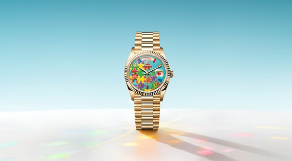 With the Oyster Perpetual Day-Date 36, there are three new variants crafted from 18 ct yellow, white or Everose gold. These timepieces display an inspirational keyword in English on the daily in the aperture at 12 o’clock and an exclusive emoji in the window at 3 o’clock. The champlevé enamel dial features a motif inspired by a jigsaw puzzle and ten baguette-cut sapphires in six different hues marking the hours.