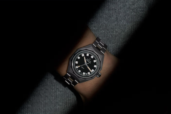 With an angular build and a matte black aesthetic, the Defy Revival Shadow retains the see through qualities of its namesake for its sapphire caseback, allowing one to view the Elite 670 manufacture movement within.