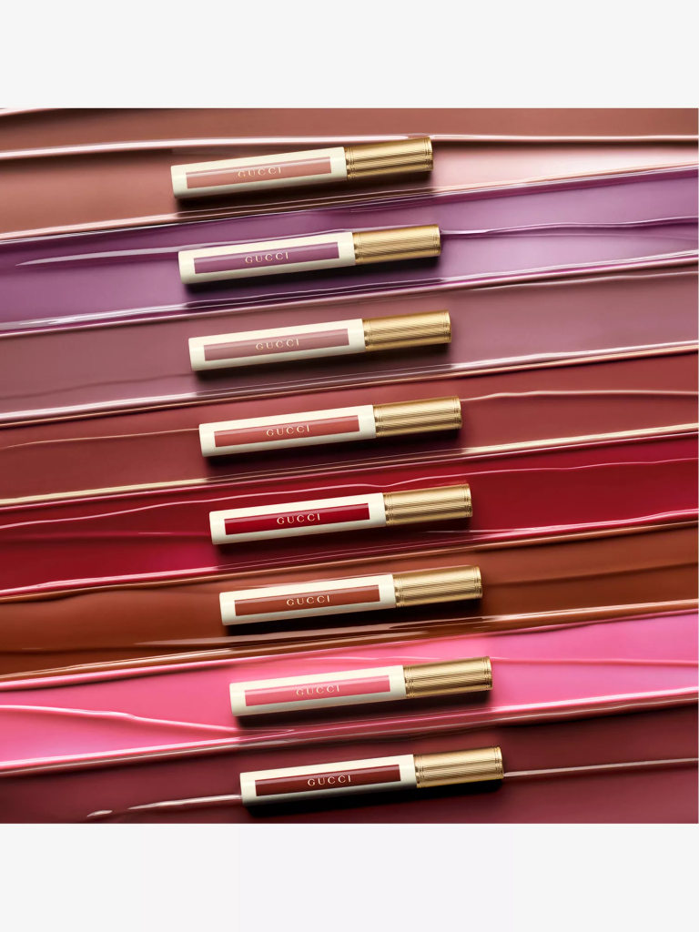 A hybrid lip tint, the new Gucci Glow Oil-In-Water Tint delivers a caring formula of super-powered ingredients like cranberry biopeptides, hyaluronic acid and black rose extract that work in harmony to replenish moisture and boost hydration, while delivering lasting colour with a radiant, watery-shine finish. Available in eight dewy shades, it is housed in an elegant opaque tube, accented with a colour match band and gold trim.