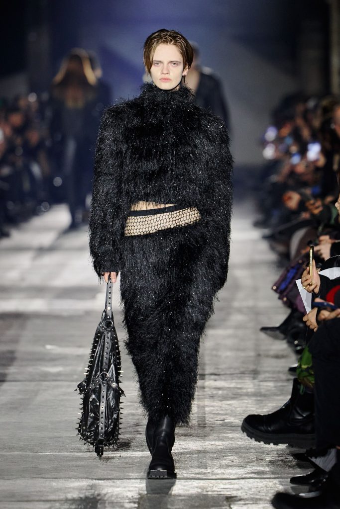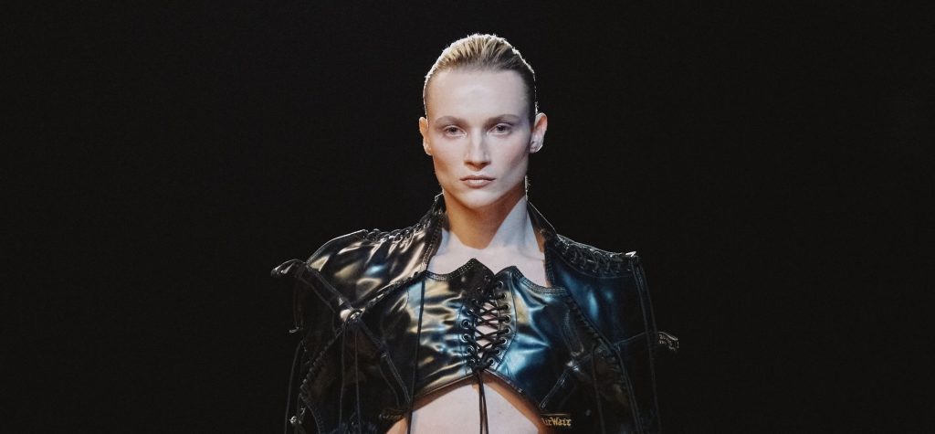 A veteran of the Japanese scene, 2026 sees the runway debut of designer Arashi Yanagawa’s honed creative vision. Once again drawing from his background as a boxer, this collection sees him combine such with a newfound love for Norwegian black metal, translating these diverse passions through his design language of sharp precision. Following up on his signature tailoring, monochromatic looks define themselves through silhouettes of intensity and piercing texture. Centred on leathers, studs and spikes, Yanagawa’s distinct design language proved a match made in heaven for Berlin’s history of alternative subculture.