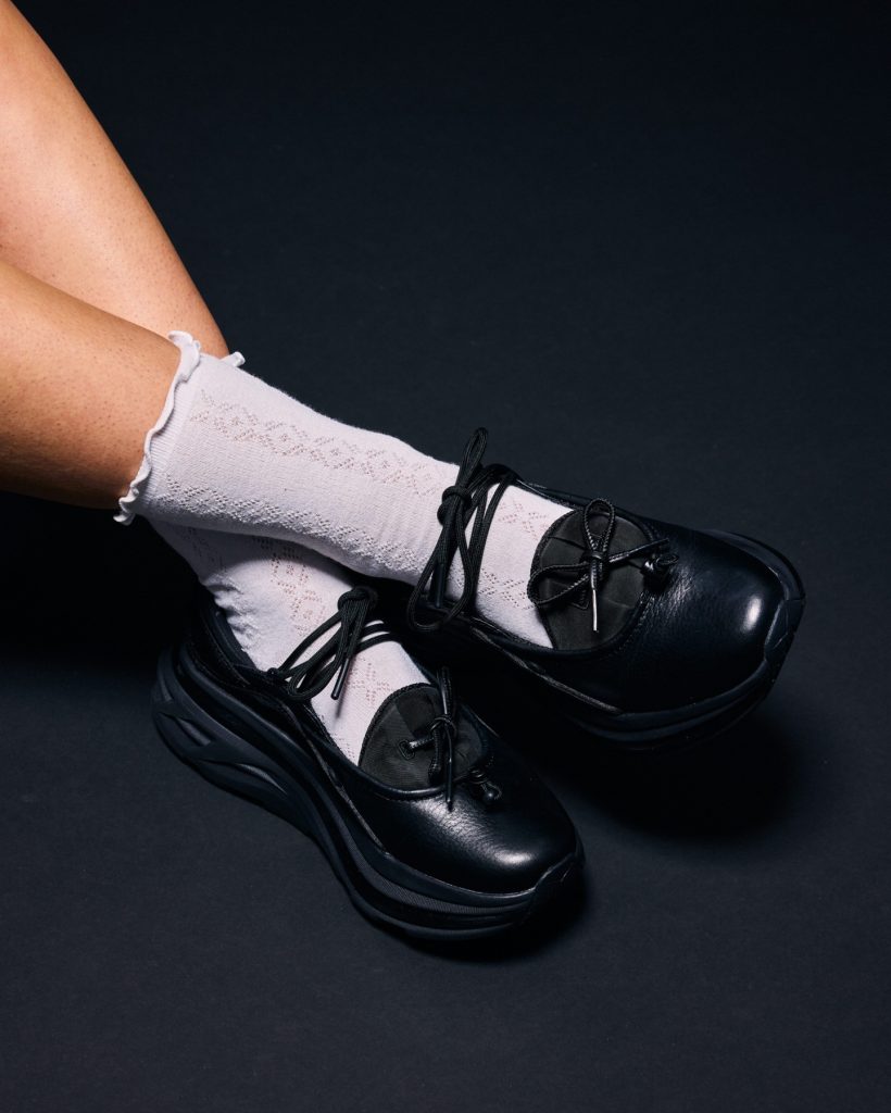Alongside sneakerinas, Mary Jane sneakers are emerging as performance-minded hybrids. Defined by their signature strap construction, the classic silhouette is now reworked with breathable uppers and athletic cushioning built into supportive, sport-driven soles. Releases in 2025, such as the Hoka Bondi Mary Jane and the New Balance Breeze Mary Jane, reinterpret the timeless strap design through an athletic lens. The contrast between delicate structure and technical comfort gives the style its modern edge, working especially well with oversized trousers or clean-lined dresses.