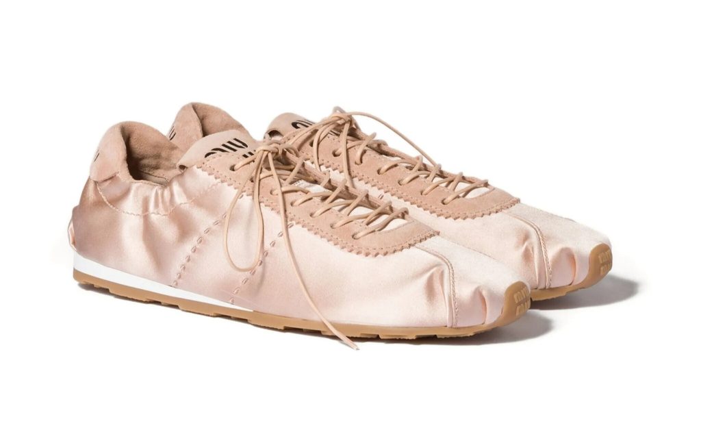 Slim, ballet-inspired silhouettes continue to lead the footwear conversation into Spring 2026, but this season the defining update lies in texture. Satin finishes give low-profile sneakerinas a softer, more elevated feel. Styles such as the Miu Miu Plume Satin Trainers and the recent Wales Bonner x Adidas Karintha Lo collaboration highlight how glossy uppers can transform sporty shapes. The streamlined sole keeps the look minimal, while the subtle sheen adds dimension, pairing effortlessly with relaxed tailoring and everyday casual dressing.