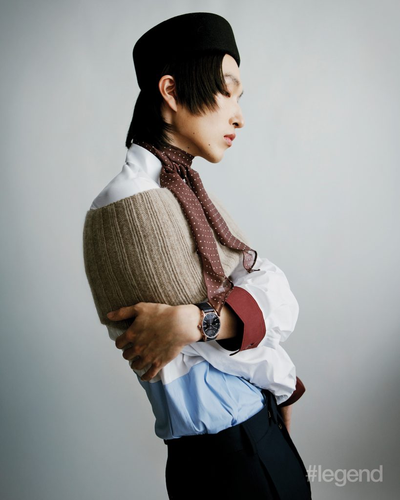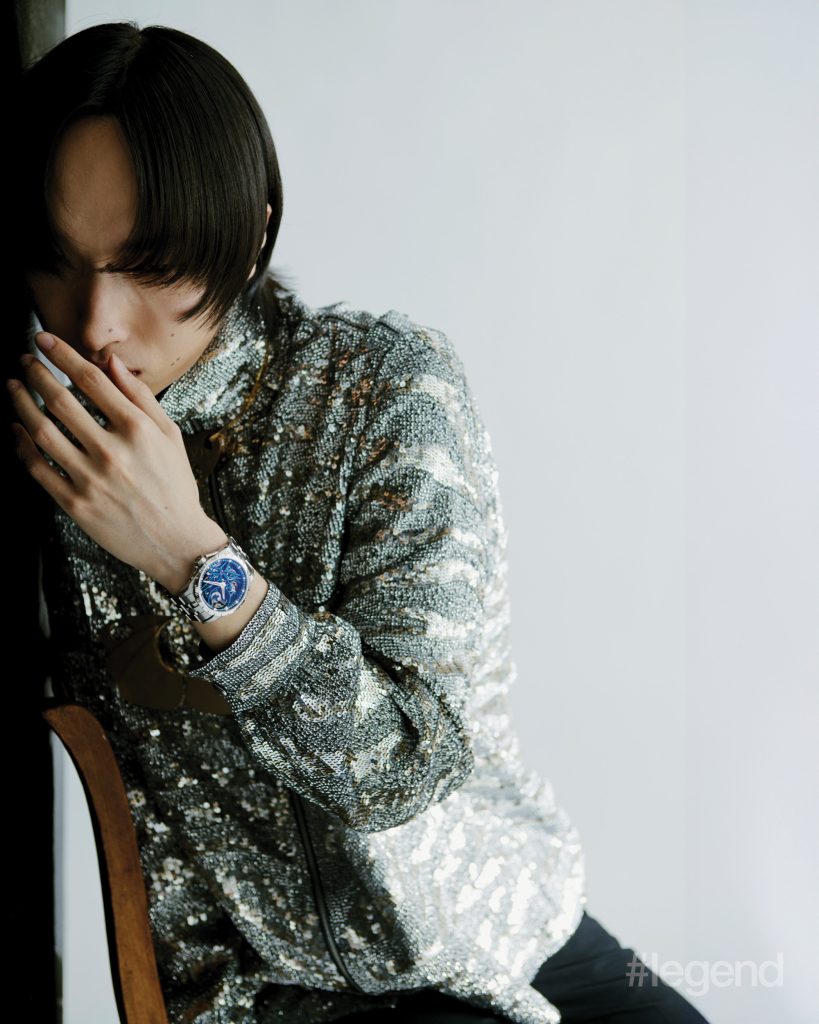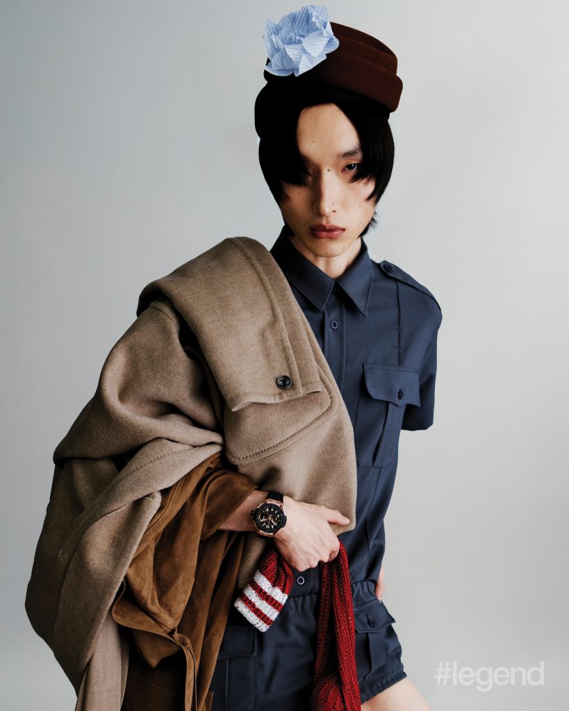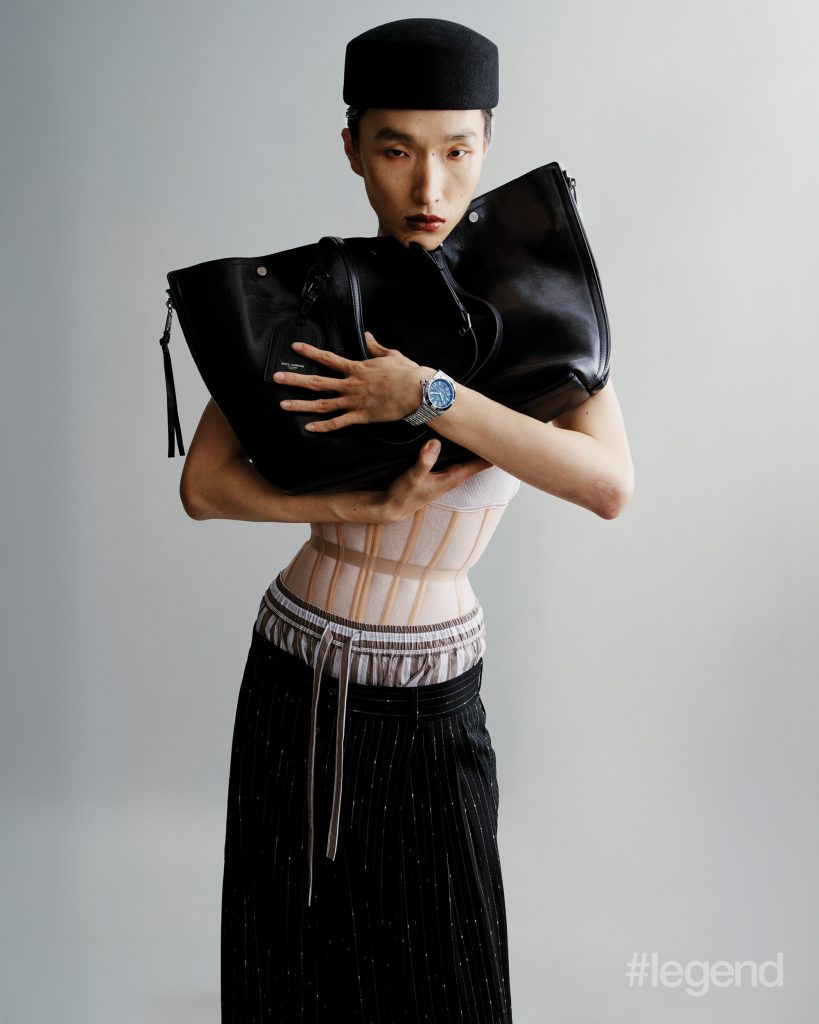 Code 11.59 by Audemars Piguet Selfwinding _ Audemars Piguet, White and blue shirt and navy trousers _ Ferragamo, Beige wool scarf _ Cos (Stylist’s own hat and scarf)Tambour Convergence Automatic in rose gold, navy blazer and grey shirt _ Louis VuittonOcto Finissimo _ Bvlgari, Black blazer, white shirt and multicolour brooch _ Maggie WangChronomat Automatic GMT 40 _ Breitling, Black pinstripe trousers, brown striped boxers and leather bag _ Dolce& Gabanna (Stylist’s own top, corset and hat)Big Bang Original Unico King Gold Ceramic 43mm _ Hublot, Navy short-sleeved shirt and shorts _ Prada, Navy and brown beanies _ Loro Piana, Brown coat _ Ferragamo (Stylist’s own brooch)1858 Geosphere CARBO₂ 0 Oxygen Limited Edition and Meisterstück Gold-Coated Classique Fountain Pen _ Montblanc, White neckband _ Dior, Navy blazer _ Louis VuittonSeamaster Planet Ocean 600M 42mm in steel on steel _ Omega, Beige fur jacket _ Stella McCartneyUltra-Chron Classic Automatic 40mm in stainless steel _ Longines, Brown striped shirt, and black pinstriped blazer and trousers _ Dolce& GabbanaLand-Dweller 36 Oyster in Oystersteel and white gold _ Rolex, Brown embellished coat _ Openbook (Stylist’s own gloves, tights and hat)Excalibur Monobalancier Cobalt Chrome _ Roger Dubuis, Silver sequin jacket and necklace _ ValentinoRanger 36mm steel case with beige domed dial _ Tudor, White neckband, blue denim jacket and white and blue knit sweater _ DiorOcto Finissimo _ Bvlgari, Black blazer and trousers and white shirt _ Bottega Veneta
