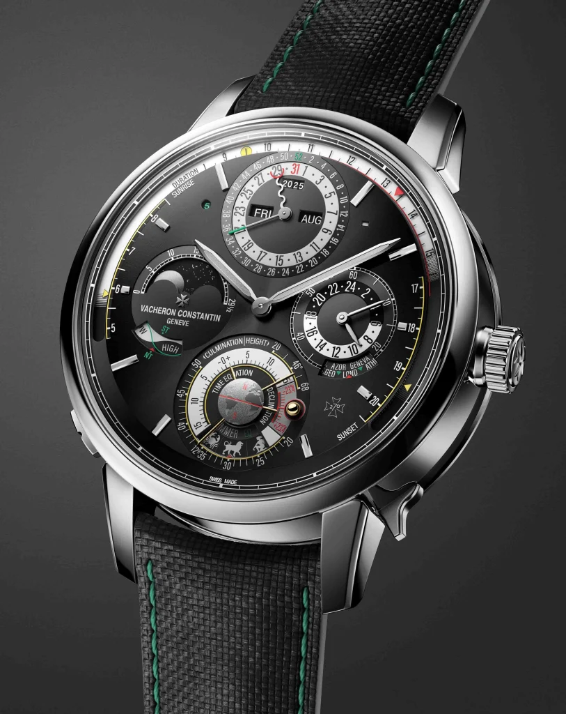 Its architecture splits into two interconnected sections: a base movement handling timekeeping, chronograph, and chiming functions and an upper module dedicated to astronomical displays. Vacheron Constantin’s new patented plug-and-play mechanism enables seamless energy transmission and assembly between the two sections.