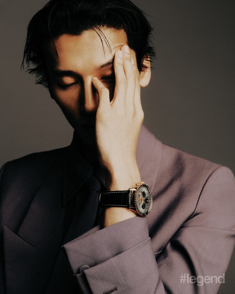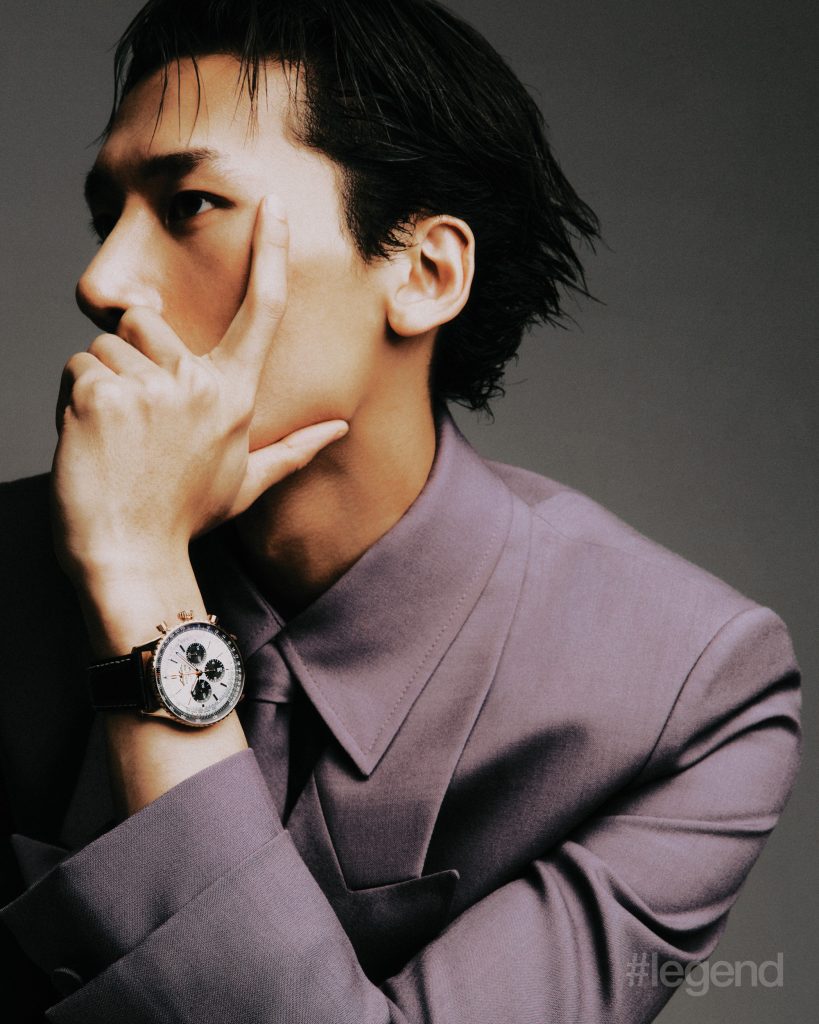 Navitimer B01 Chronograph 46 watch _ Breitling, Purple double-breasted jacket, shirt and tie _ Gucci
