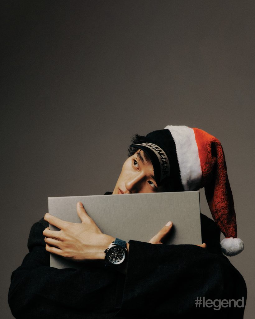 Klepcys DICE Glacial Blue watch in grade 5 titanium _ Cyrus, Black coat _ COS, Logo cap _ Balenciaga (Stylist’s own Christmas hat)