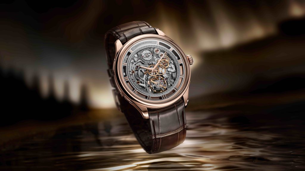 Among the key models is the Gyrotourbillon À Stratosphère, which features a new patented triple-axis tourbillon engineered to negate the effects of gravity in 98% of positions. The Master Hybris Mechanica Ultra Thin Minute Repeater Tourbillon introduces what the brand describes as the thinnest automatic minute repeater tourbillon, while the Master Grande Tradition Tourbillon Jumping Date returns with an updated movement architecture that includes a cutaway at 9 o’clock revealing the “papillon” mechanism in action.