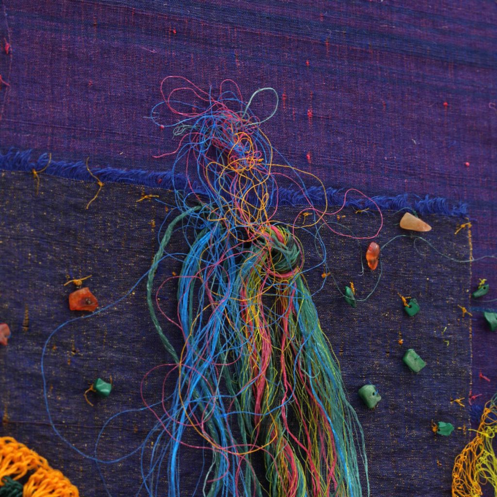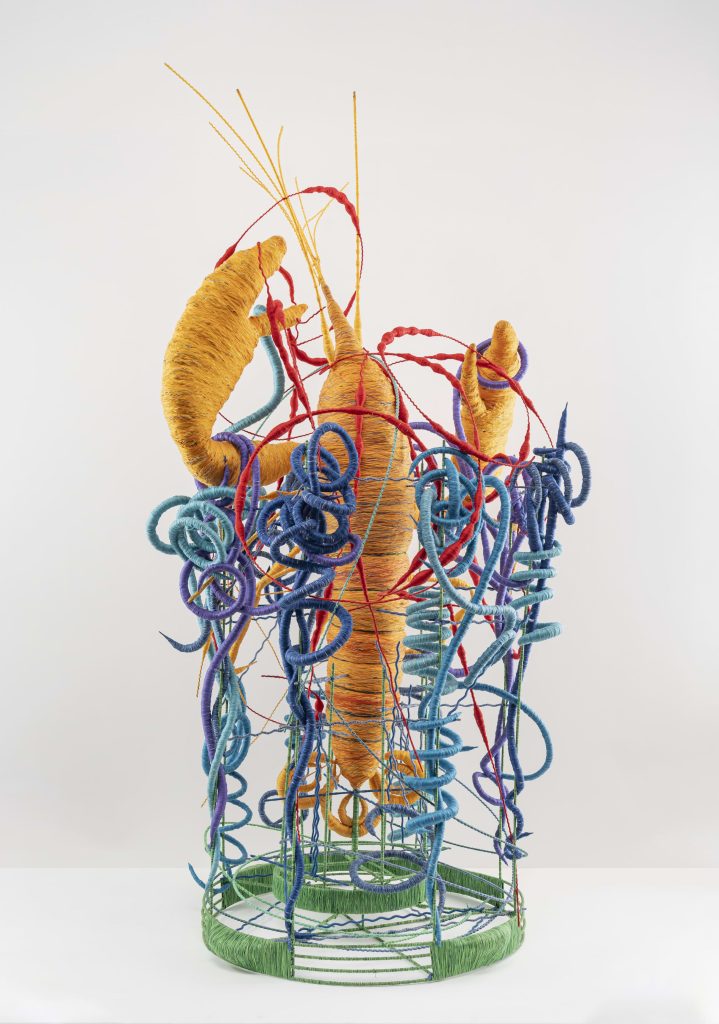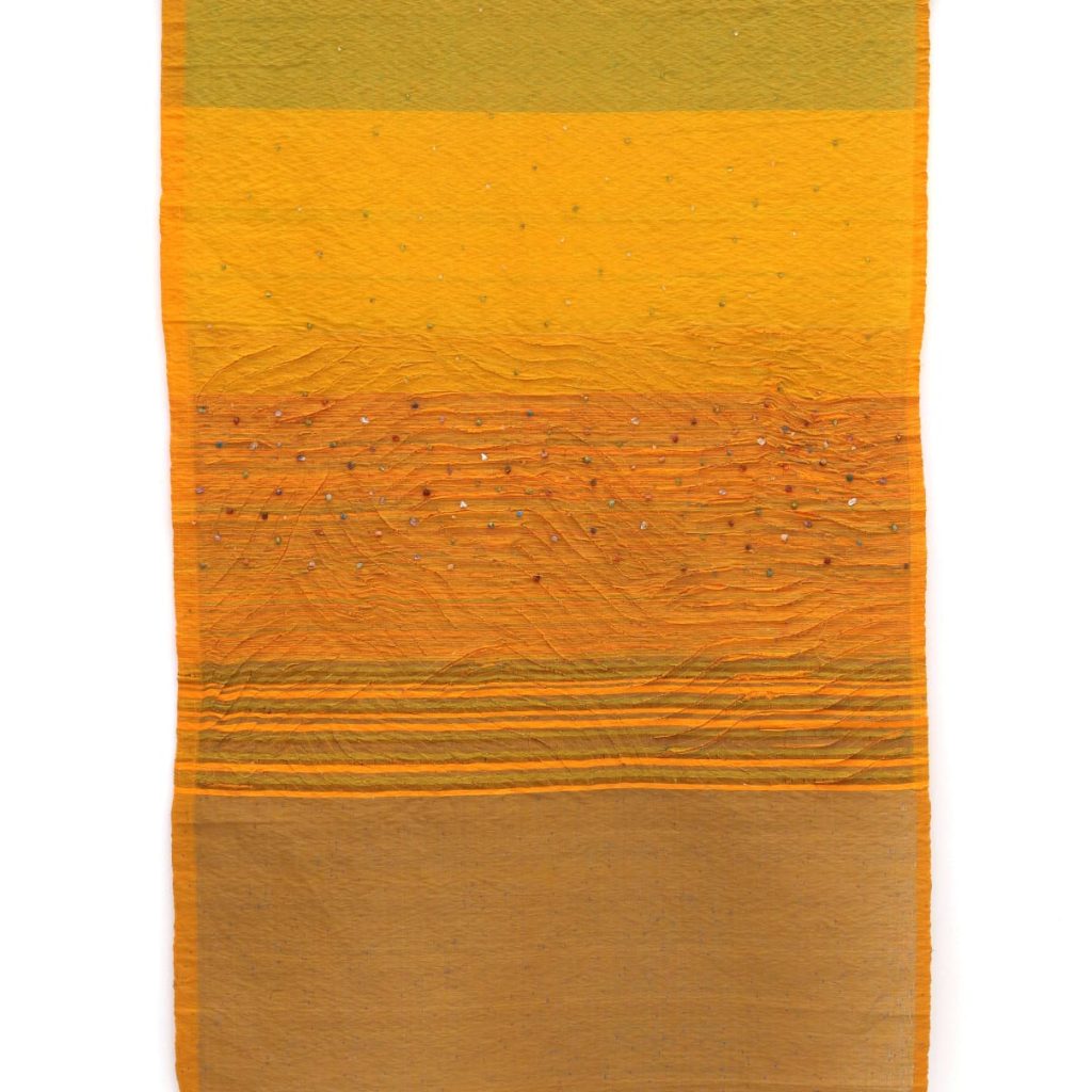 This year’s program draws on the five elements – space, water, fire, wind, and earth, a cosmological framework widely found across Asia. Works include Suki Seokyeong Kang’s multimedia textile landscape representing space, Parag Tandel’s yarn-based installation exploring ancestral ties to the sea, Masaomi Yasunaga’s glazed ceramic forms evoking fire and Geraldine Javier’s monumental eco-printed fabric columns resembling trees, representing earth.
