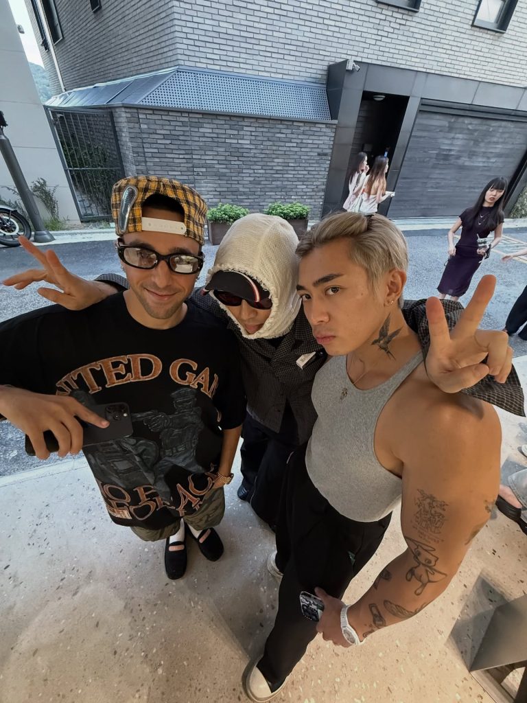 Tyson Yoshi’s take on minimalism is rooted more in street style. A grey tank top paired with black tailored trousers creates an inherent contrast, casual on top, formal below. Yet, on him, it settles into a natural balance. Rick Owens sneakers add structure and visual weight, sharpening the overall outline. A few rings and a watch serve as subtle accents, enhancing rather than disrupting the simplicity. Minimal, but undeniably bold.