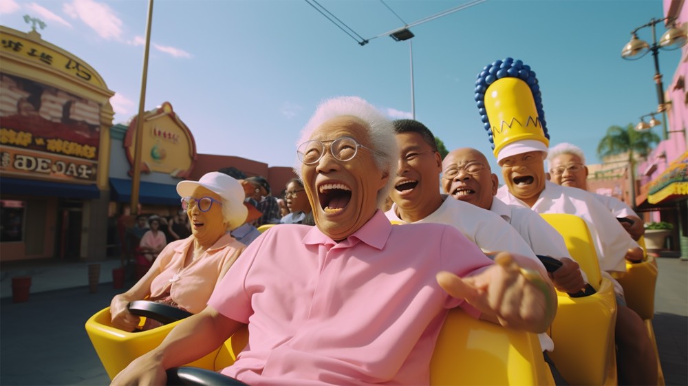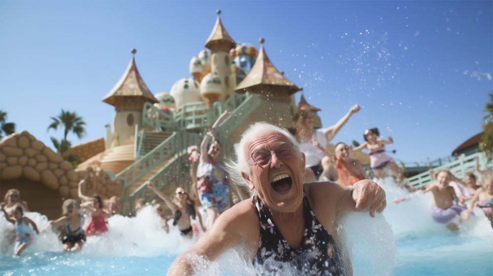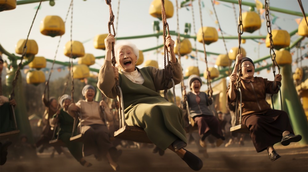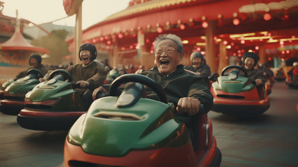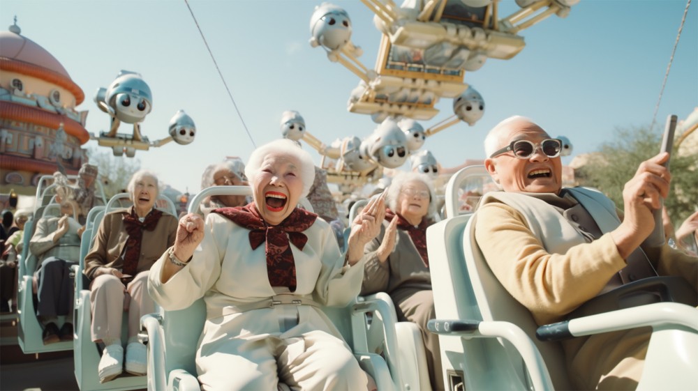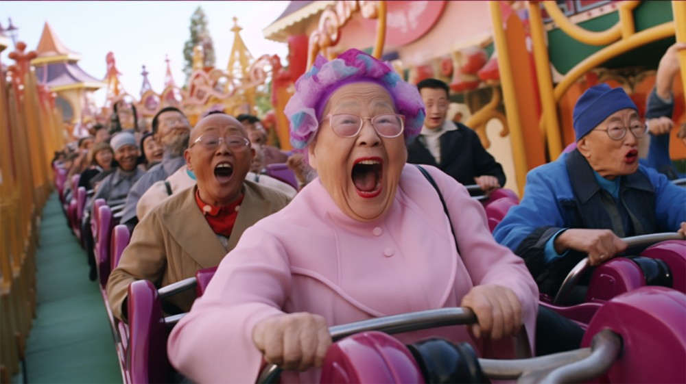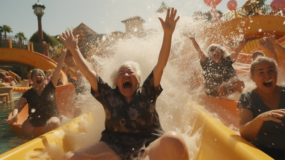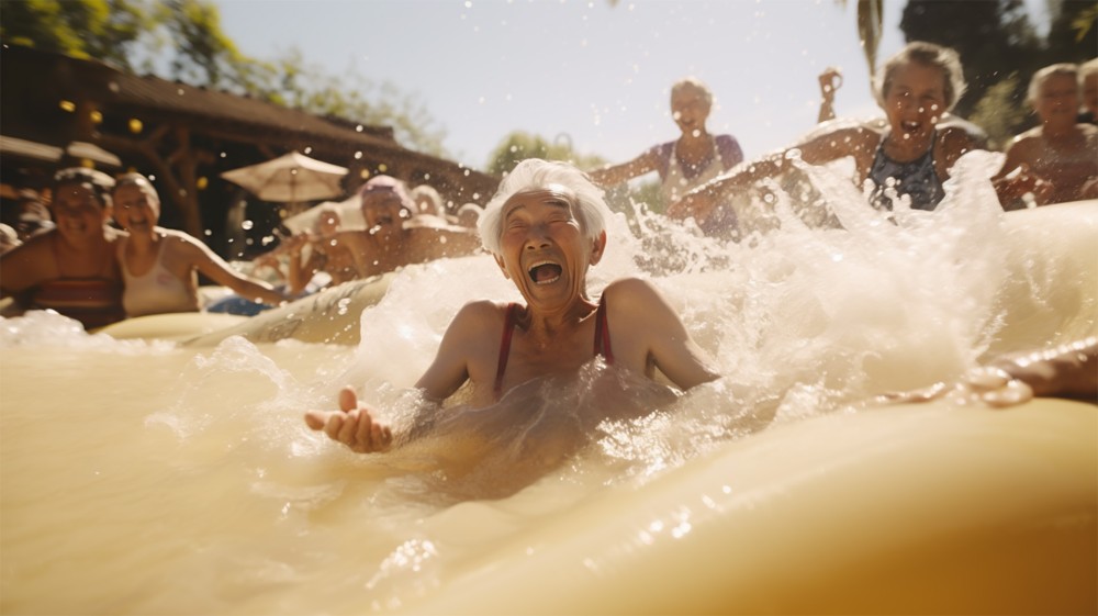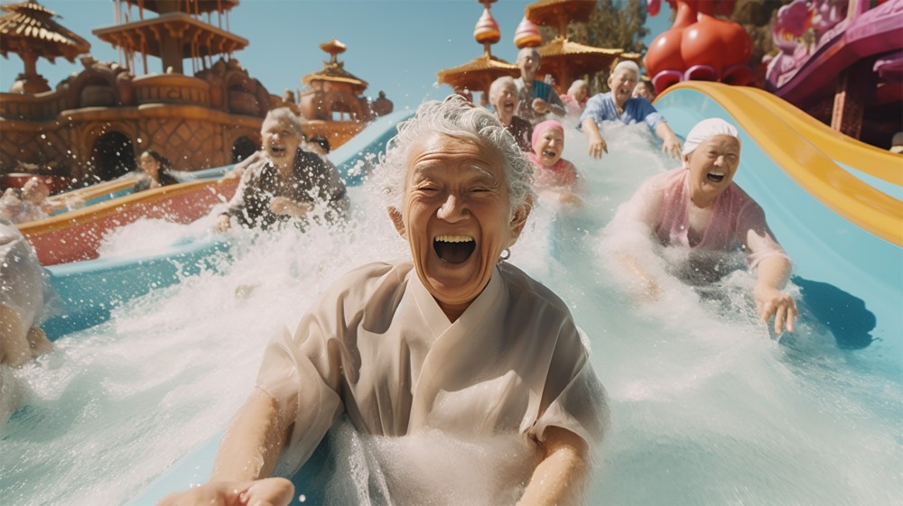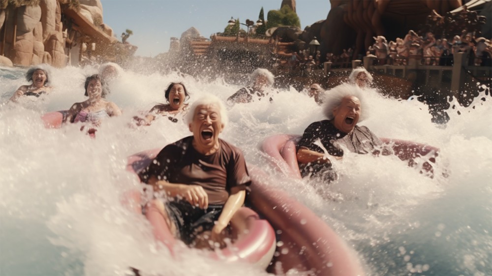 “This is a heartwarming photo series created with Midjourney, capturing the vibrant spirit of grannies and grandpas as they wholeheartedly embrace happiness and create cherished memories in amusement parks, water parks, and outdoor arcades. From exhilarating rides to nostalgic arcade challenges, this project celebrates the pure joy that comes from shared experiences within a community.” – Vanessa Li, photographer