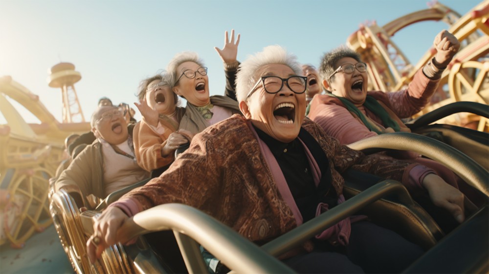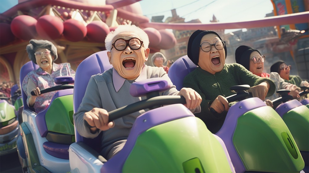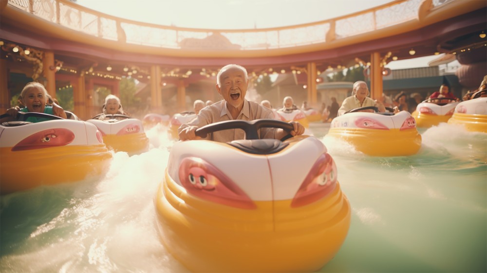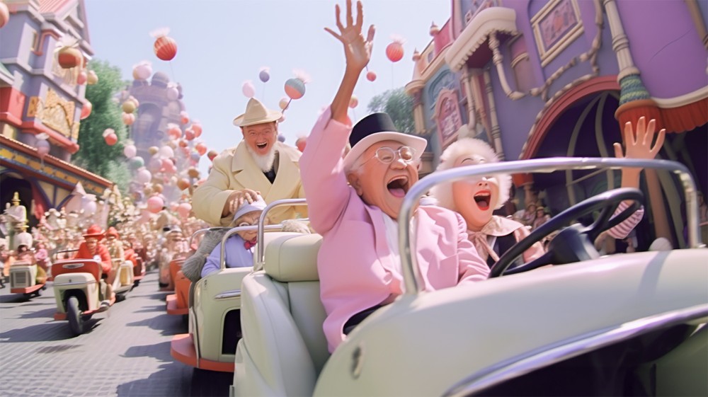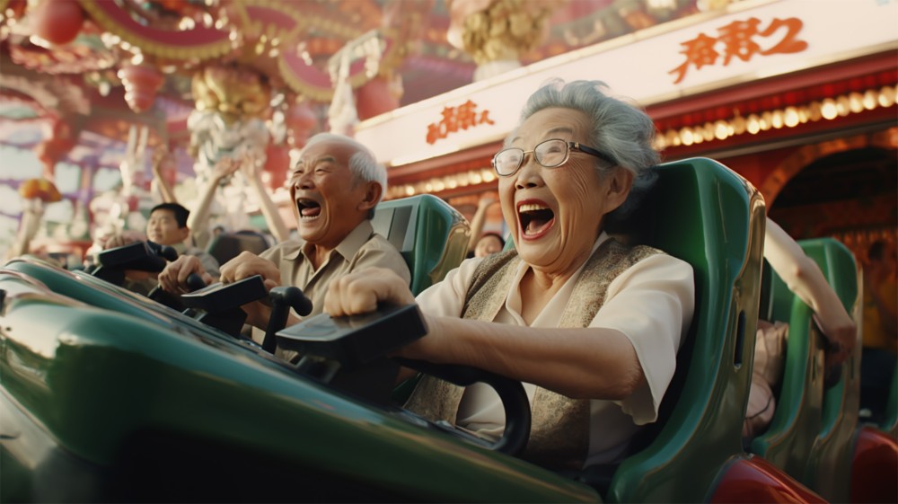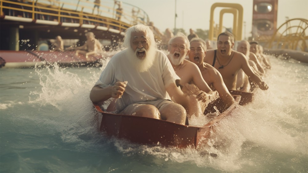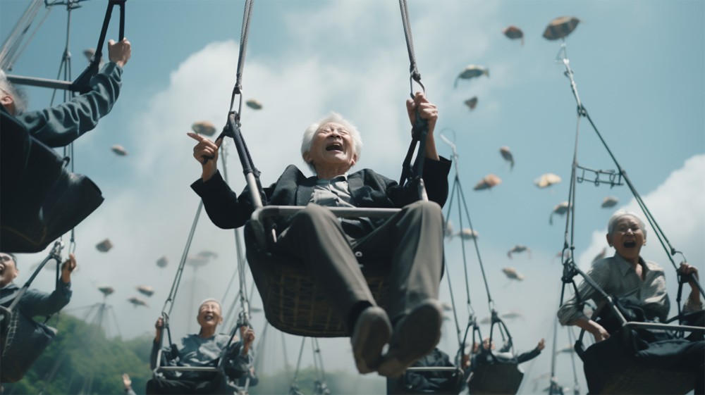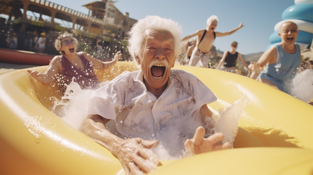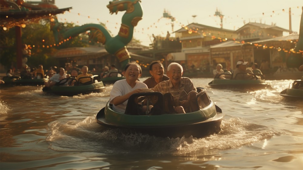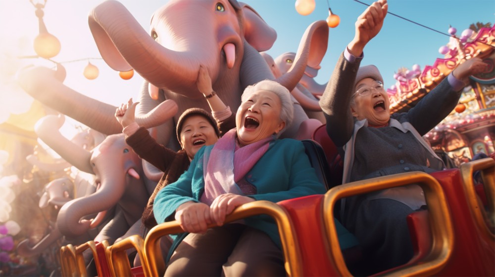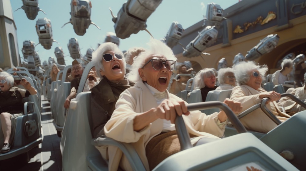 “This is a heartwarming photo series created with Midjourney, capturing the vibrant spirit of grannies and grandpas as they wholeheartedly embrace happiness and create cherished memories in amusement parks, water parks, and outdoor arcades. From exhilarating rides to nostalgic arcade challenges, this project celebrates the pure joy that comes from shared experiences within a community.” – Vanessa Li, photographer