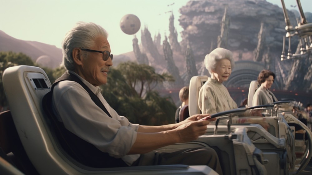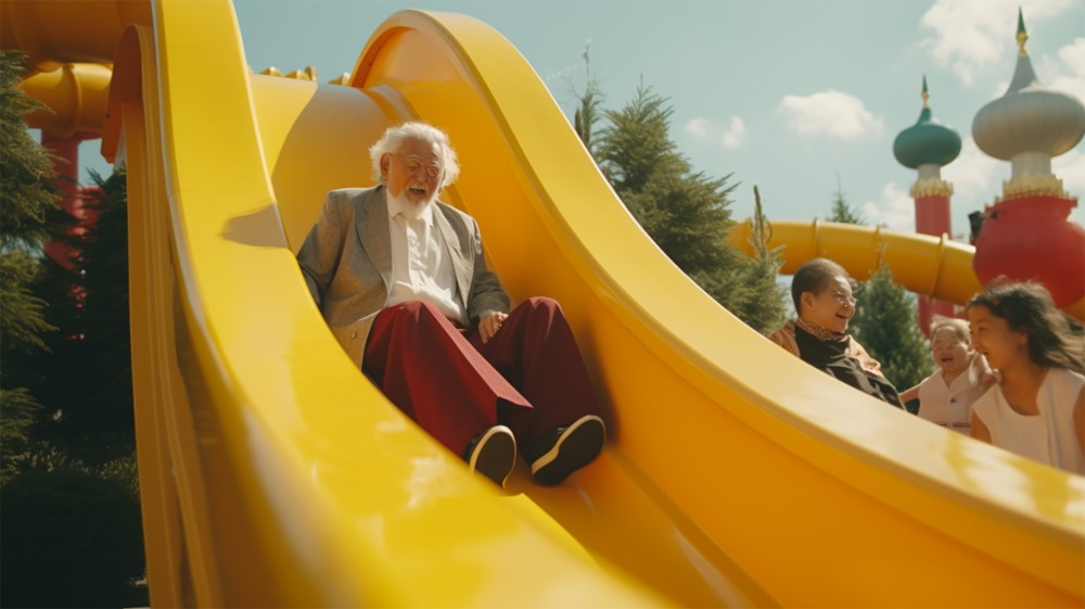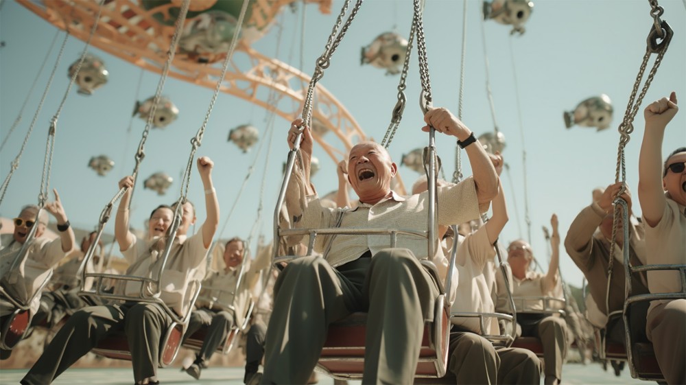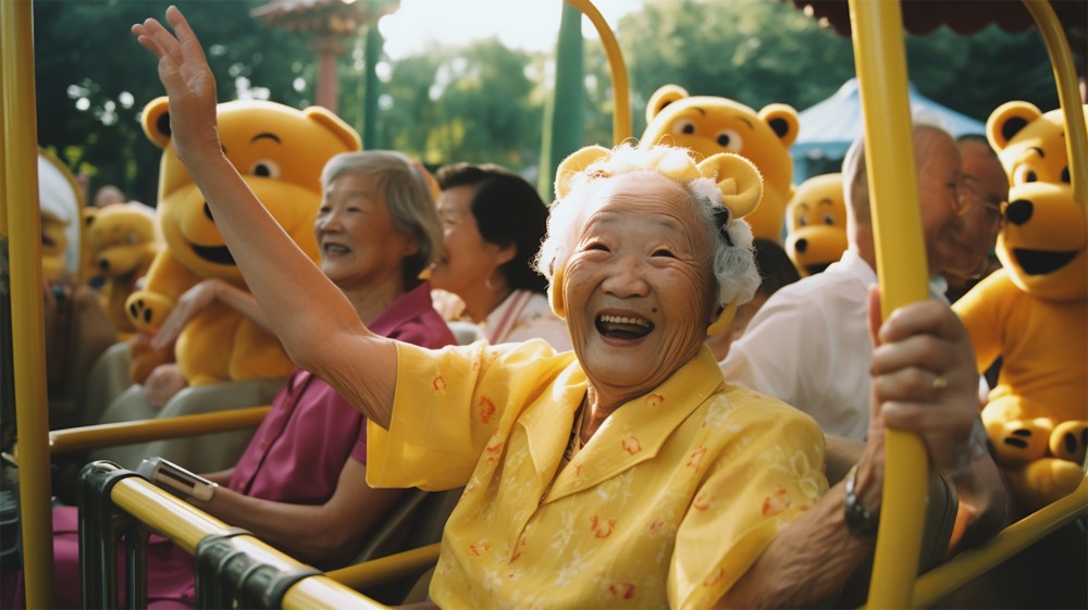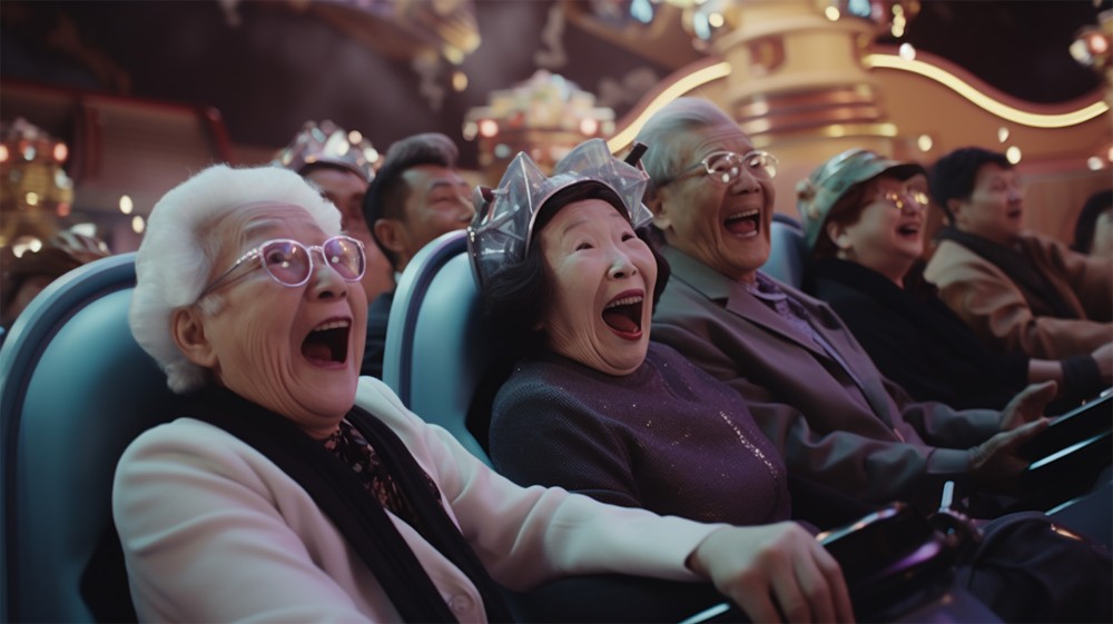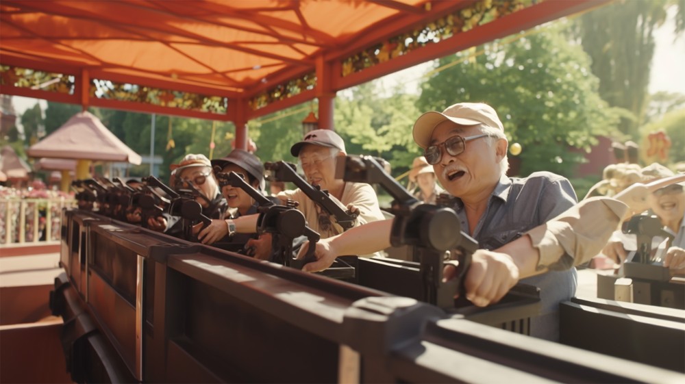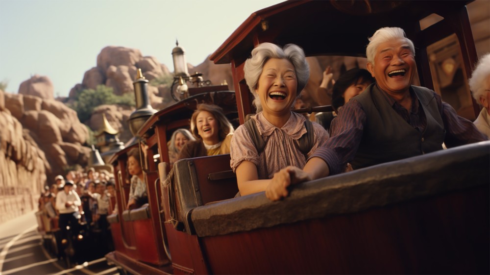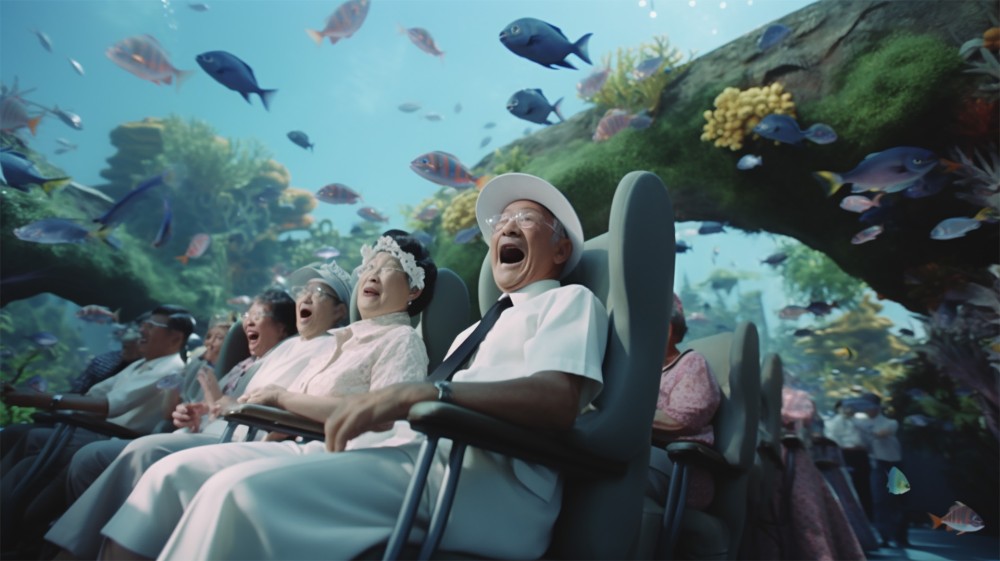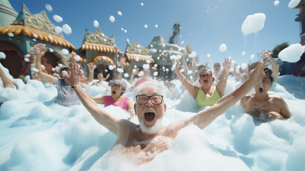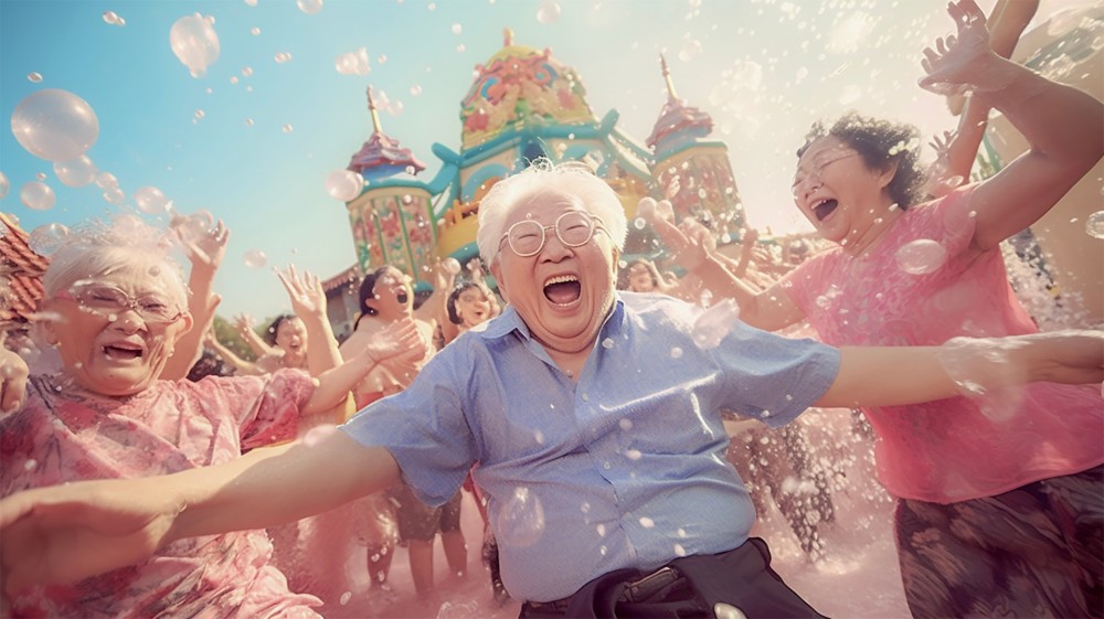“This is a heartwarming photo series created with Midjourney, capturing the vibrant spirit of grannies and grandpas as they wholeheartedly embrace happiness and create cherished memories in amusement parks, water parks, and outdoor arcades. From exhilarating rides to nostalgic arcade challenges, this project celebrates the pure joy that comes from shared experiences within a community.” – Vanessa Li, photographer