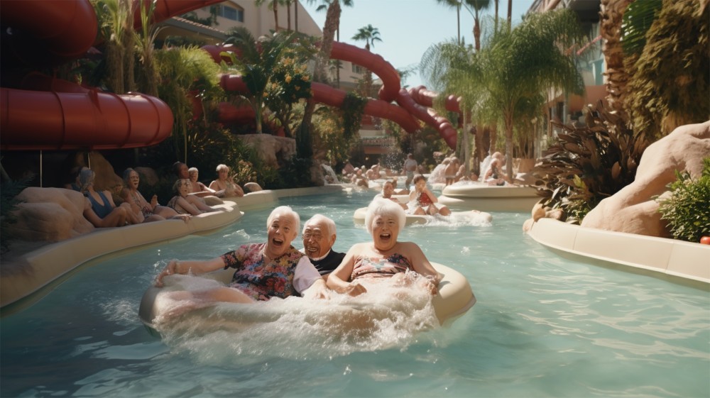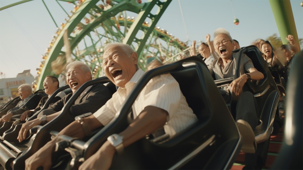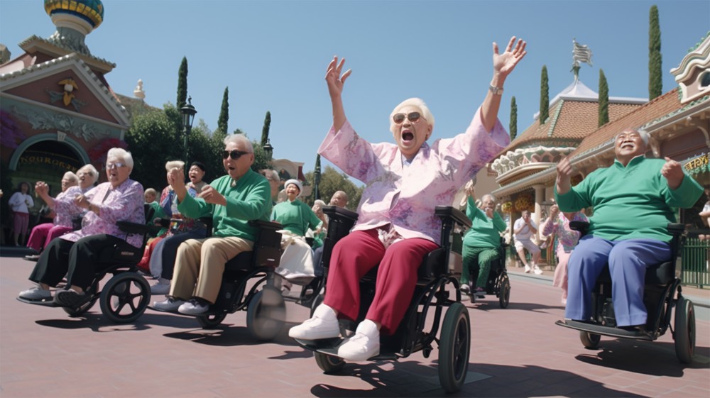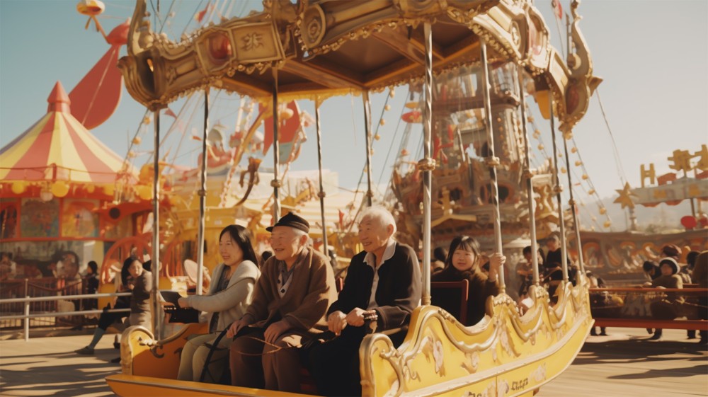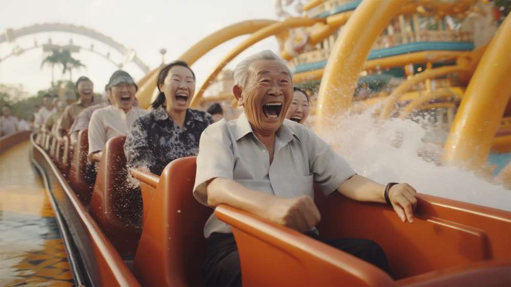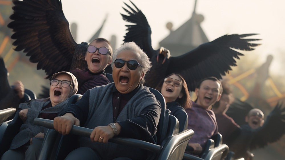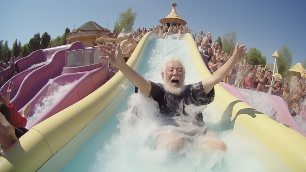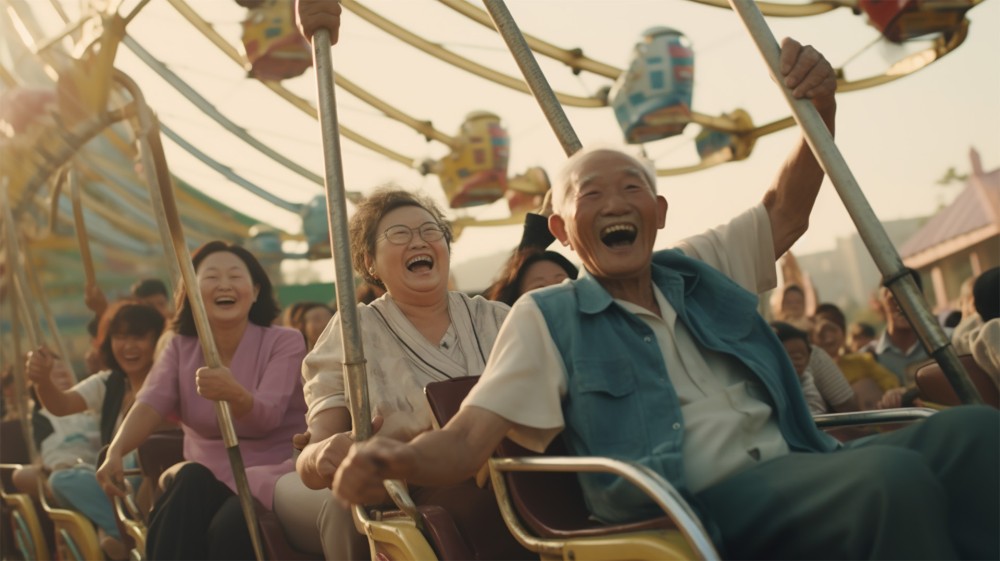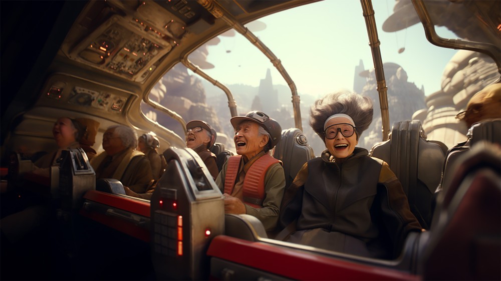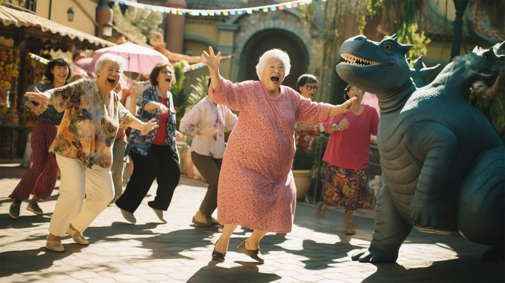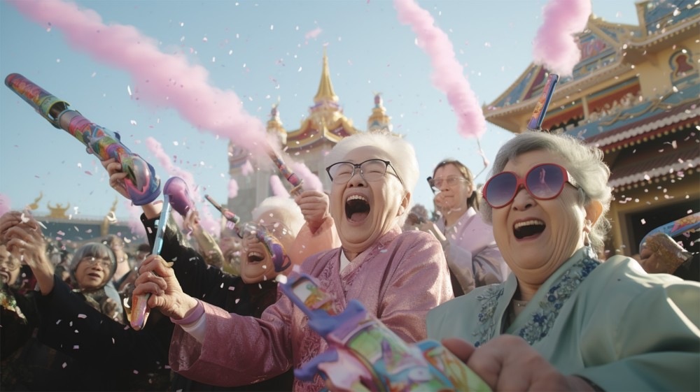 “This is a heartwarming photo series created with Midjourney, capturing the vibrant spirit of grannies and grandpas as they wholeheartedly embrace happiness and create cherished memories in amusement parks, water parks, and outdoor arcades. From exhilarating rides to nostalgic arcade challenges, this project celebrates the pure joy that comes from shared experiences within a community.” – Vanessa Li, photographer