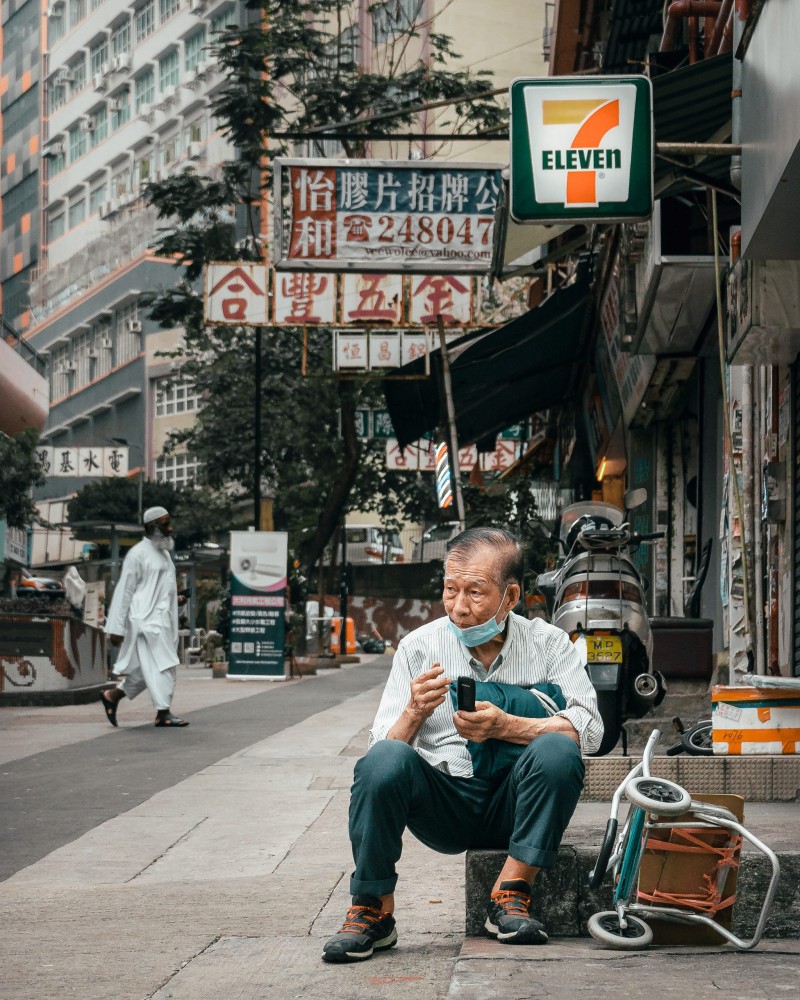 “Many of us see ‘loneliness’ as a sad thing but when we change the word to ‘solitude’, we will be better able to see the benefits of being alone. As a street photographer, I’m always walking around the city alone with my camera, observing people. For me, photography is a solitary practice. Sometimes when I spot men on the streets by themselves, I can see their mental strength and feel their inner peace. ”