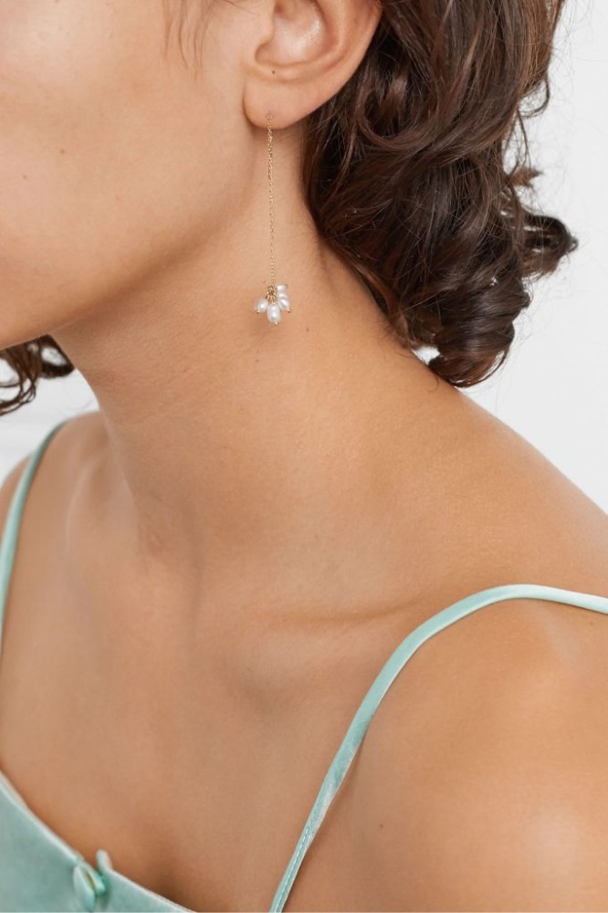 Product spotlight: The Cloudburst earring is strung with dainty pearls clustered together for an artistic appeal. It’s been handcrafted in New York from recycled gold and designed to thread through your lobe for a customised drop.