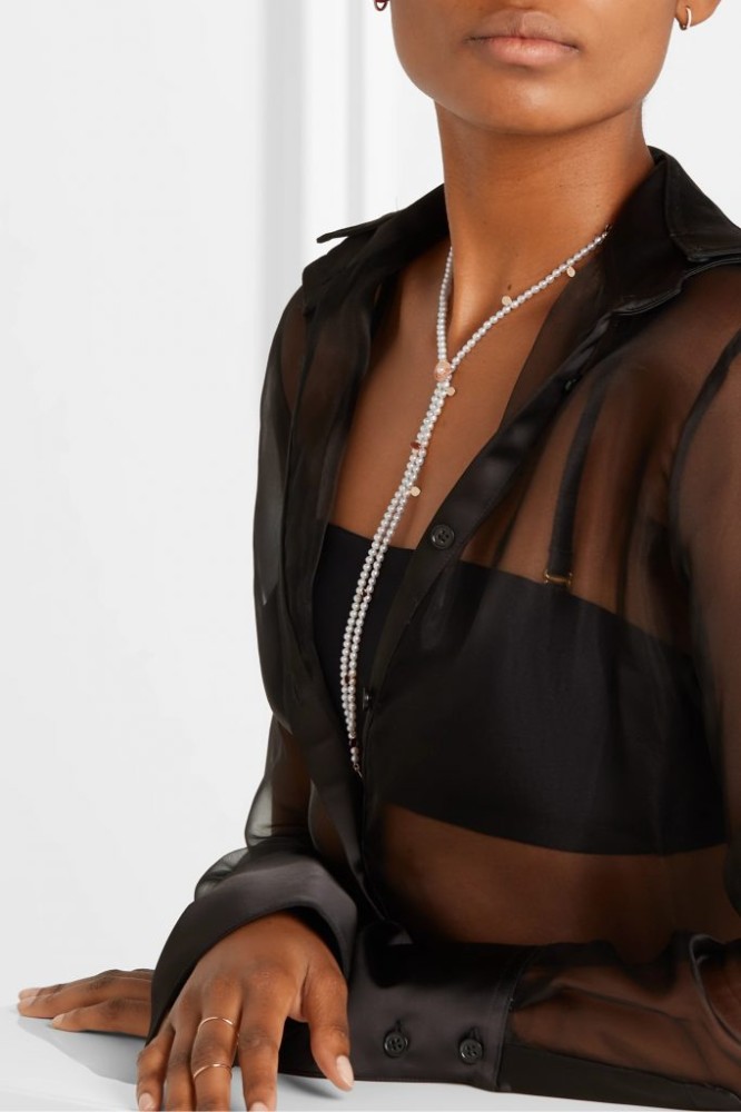Product spotlight: A definite conversation piece. Poppy Finch’s necklace is handcrafted in Canada with scores of lustrous freshwater pearls and accented with polished 14K gold discs.