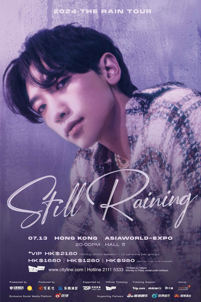 Rain gave an electrifying performance at the Waterbomb Hong Kong music festival, which was ironically besieged by heavy rain. If you missed him there, don’t worry as he is due back on 13 July for a full solo concert.