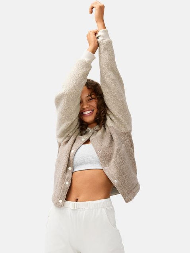 Our pick: Throw on this MegaFleece bomber for your next hike. It features functional pockets, full snap for warmth and is even made of 63% recycled wool.