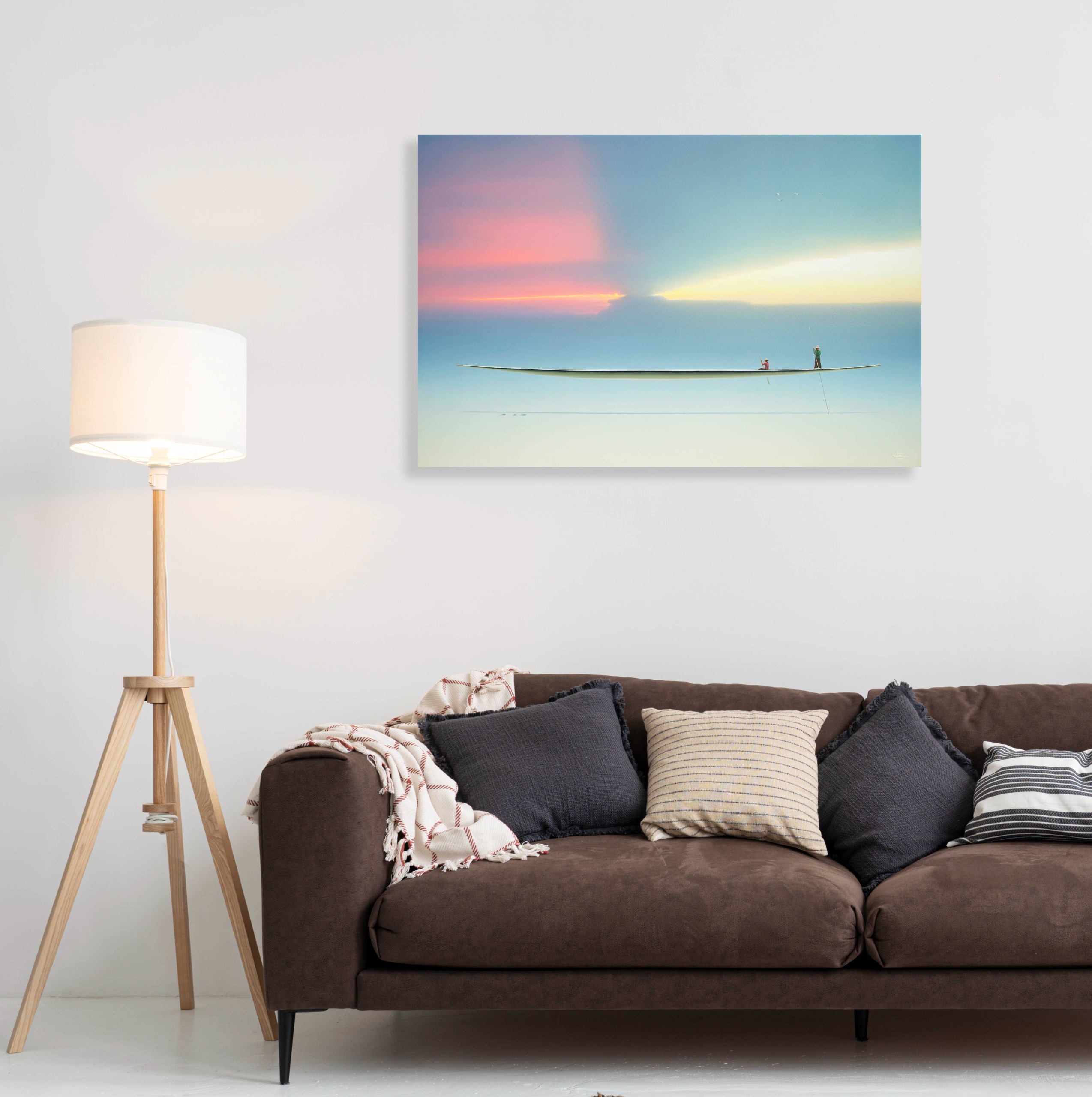 Remember that an artpiece doesn’t have to remain at the same spot in your home, so make sure to pick one in a size where it can be flexibly displayed. Also hanging your art pieces at different heights can create an illusion that a room is of a different size than it is, so use that to your advantage when it comes to reconfiguring your place.