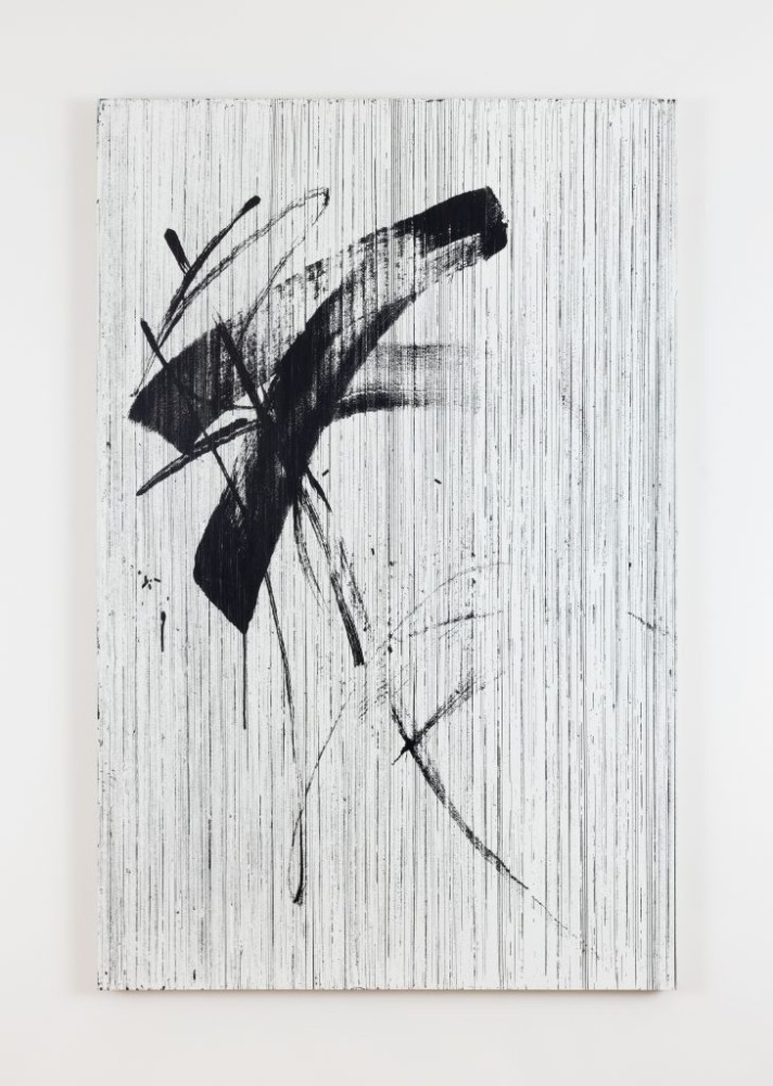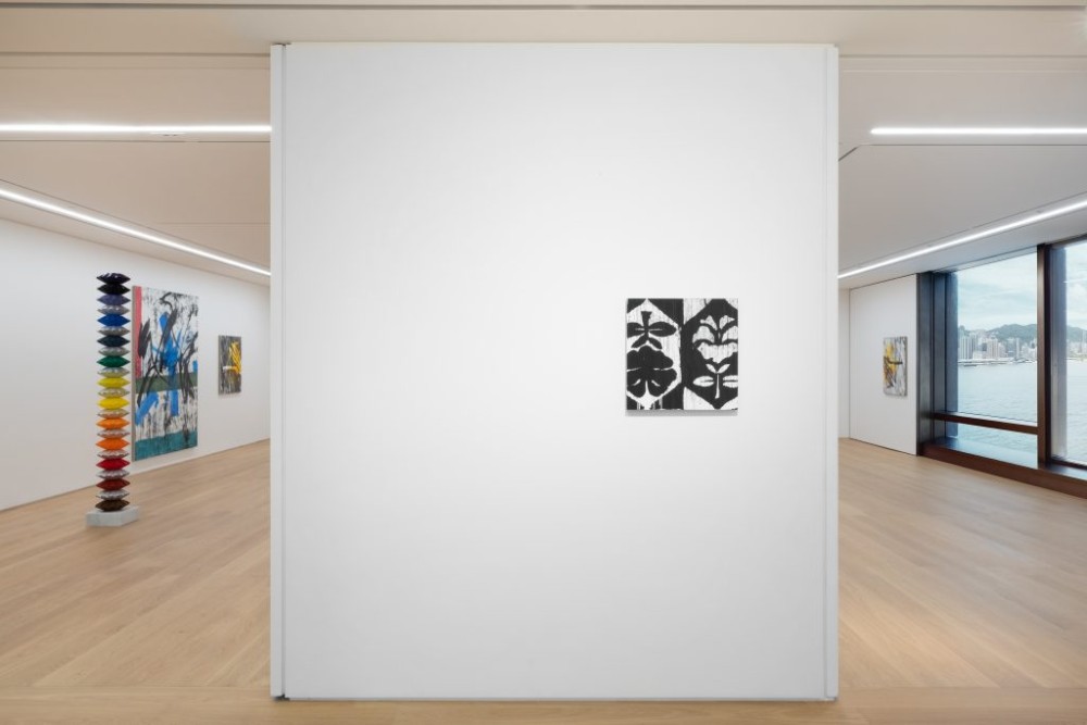 The black-and-white painting plays with yin and yang compositions of a flower motif and employs a diptych structure that has long fascinated the artist. “I always have two separate positive and negative paintings that are symmetrical to each other but this [napkin-inspired piece] comprises both, which was maybe the reason why I liked it so much,” he says.