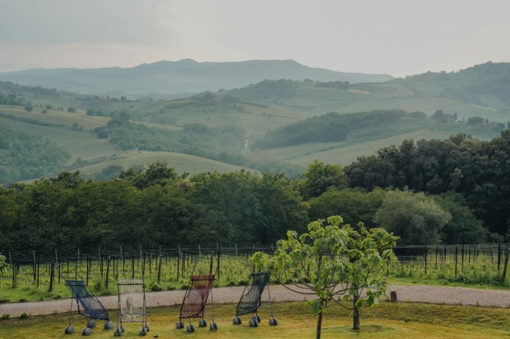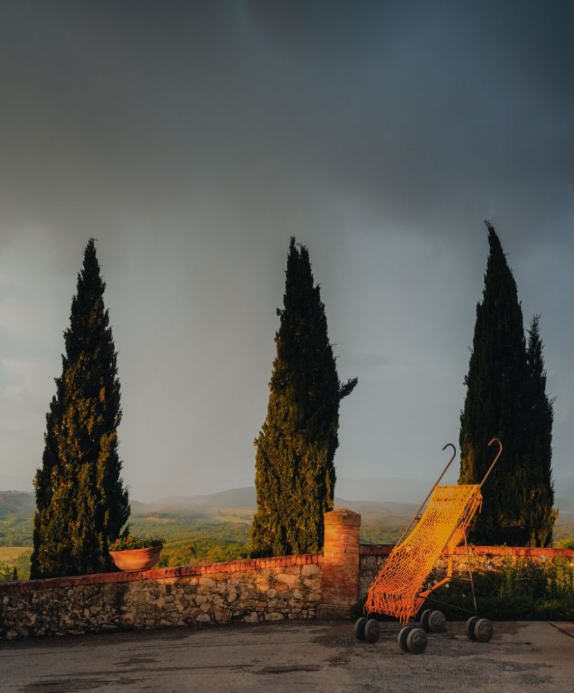 The installations fit so easily that one may think that Castello di Casole has provided the strollers for the convenience of its guests to enjoy the view, instead of being art. But Ward, known for recontextualising found objects, has “long released the fear of being seen as functional” and instead is more interested in providing visitors with “the experience of being in the work”.