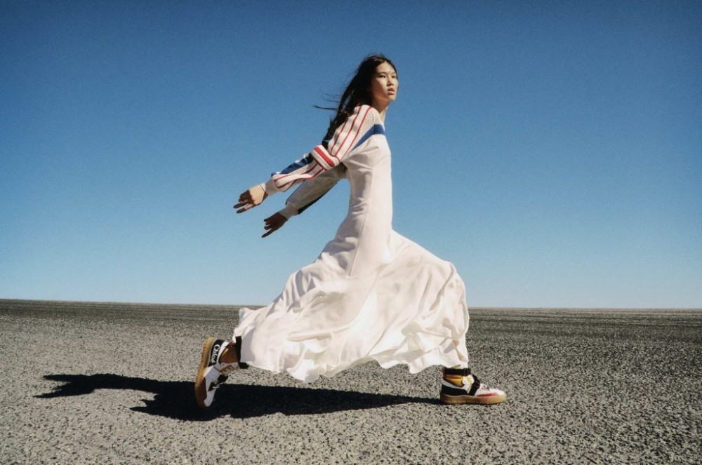 Inspired by Formula 1, Chloé’s creative director Gabriela Hearst infused a capsule collection with an aesthetic of speed and precision. This collection includes an edit of ready-to-wear, bags, shoes and accessories. The ready-to-wear offer silhouettes inspired by racecars, while the chequered flag pattern signifies the beginning and finishing line of a race.