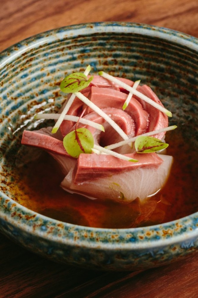 Shun Sato: Censu is Japanese for “folding fan”, but in English the name alludes to a celebration of all the different senses that define Censu as a space. Senses exist not only in terms of taste, touch, sound, smell and sight, but also in terms of lifestyle. My team’s fashion, music, design and, of course, culinary senses are at the core of our values. We strive to be more than a restaurant. This is why we collaborate with different lifestyle and design partners, like Japanese fashion brand, Washi, and pottery artisan, Waka.