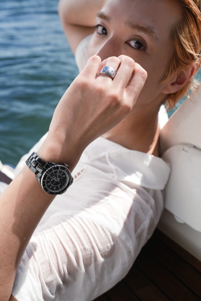 Hilary Fan also features as part of Chanel’s campaign with her youthful demeanour that complements the J12’s permanence. Her effortless style and vibrant personality bring out the carefree playfulness of the J12. Fan is styled to go all the nautical miles with her sailor-chic ensemble of which the J12 timepiece is the crowning jewel.