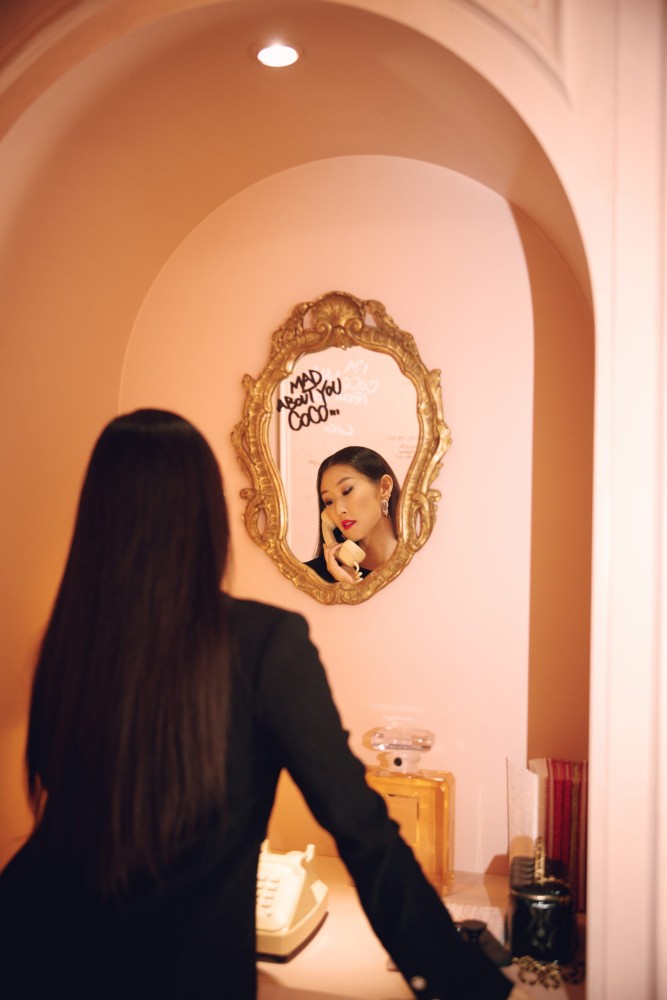 “Le Grand Numéro de Chanel was such a sensory experience. I was blown away by the scale of the set-up and how Chanel was able to capture the essence of each fragrance,” she says. “It was remarkable to see the rooms dedicated to Chanel N°5 – it was almost like a museum, filled with works created in homage to the fragrance by artists, both past and present, while hallways were lined with famed N°5 advertisements.