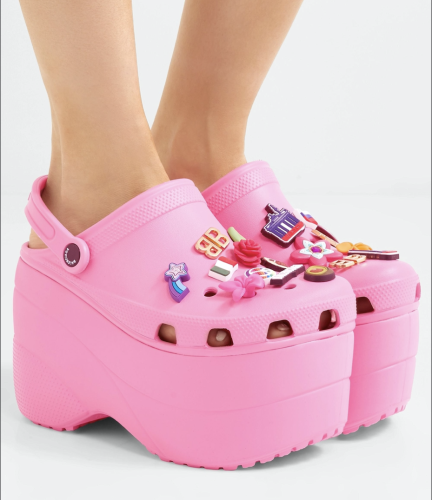 Balenciaga soon followed suit and featured a 10-inch platform reboot of foam clog in its SS18 collection, which was decorated with logos, flags, and even a random avocado, which retailed for a whopping GBP645.